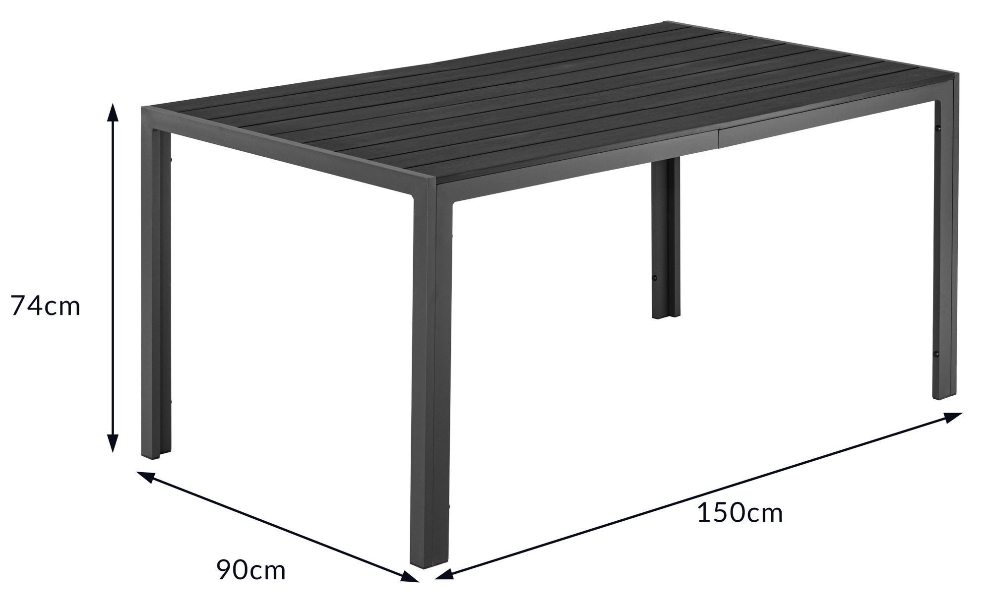 Aluminium WPC Gartentisch 150cm x 90 cm Tisch MILOS Esstisch Alutisch Tisch