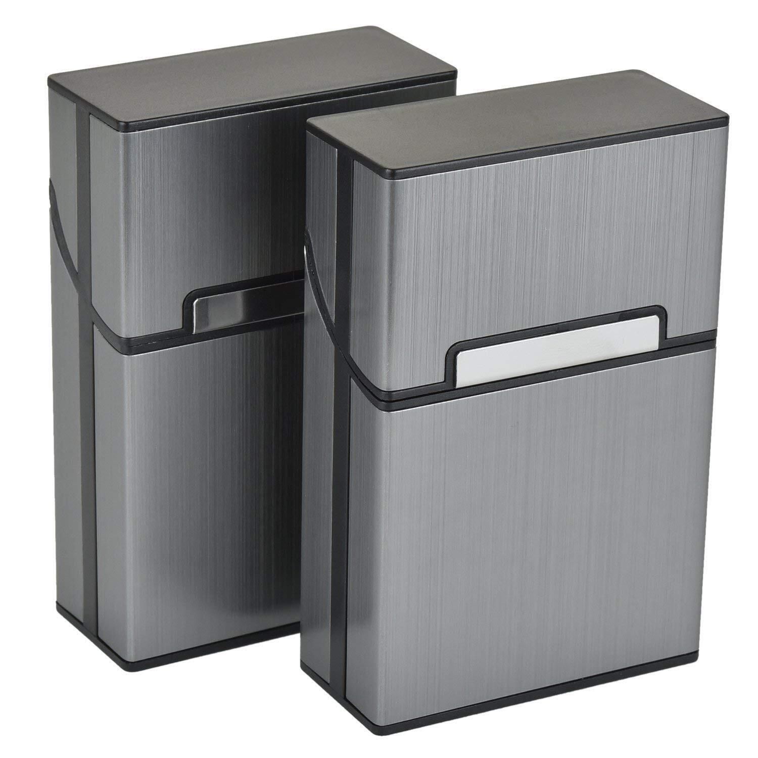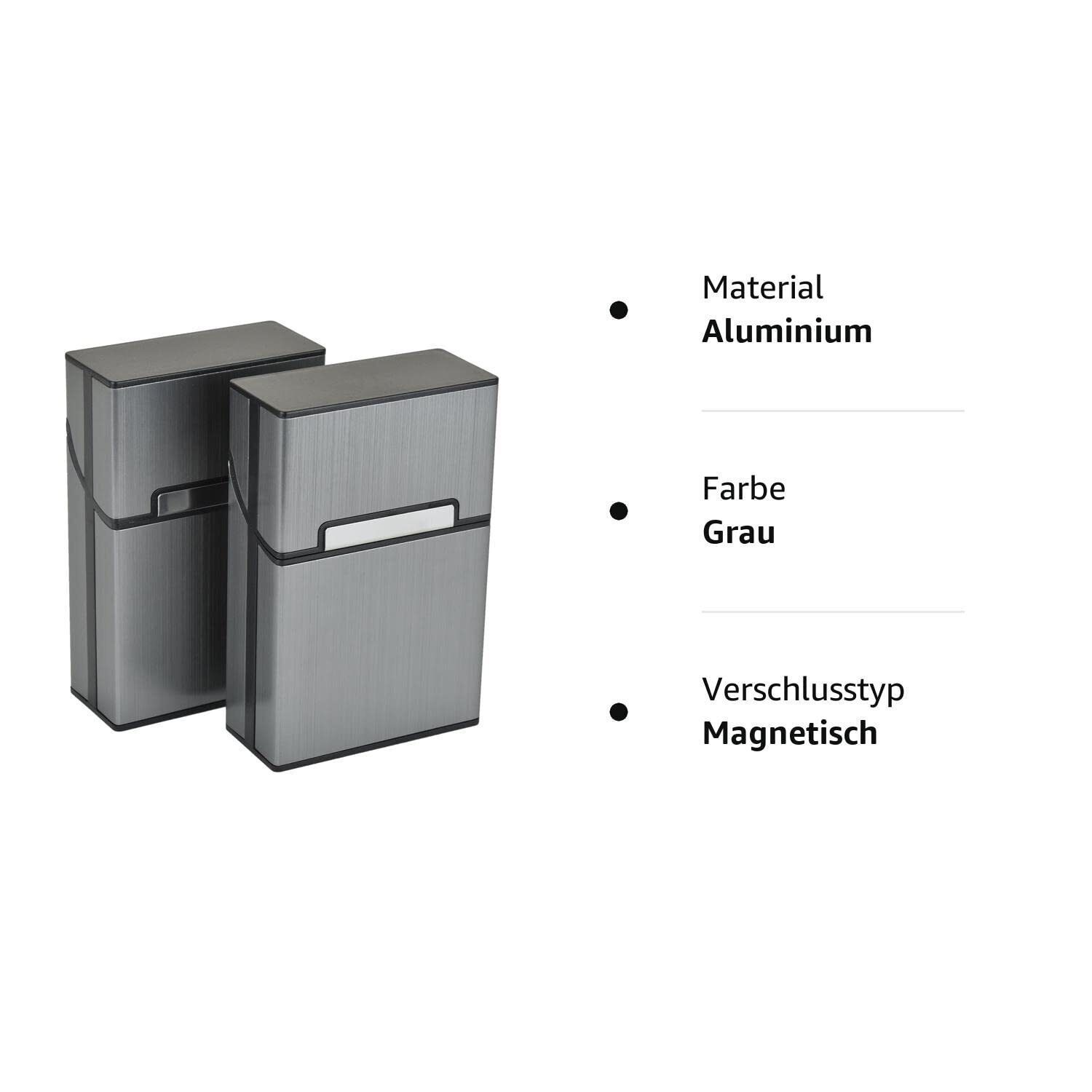 Aluminium Zigarettenetuis von eLander [2er/Set Grau] Magnetisierte Deckel