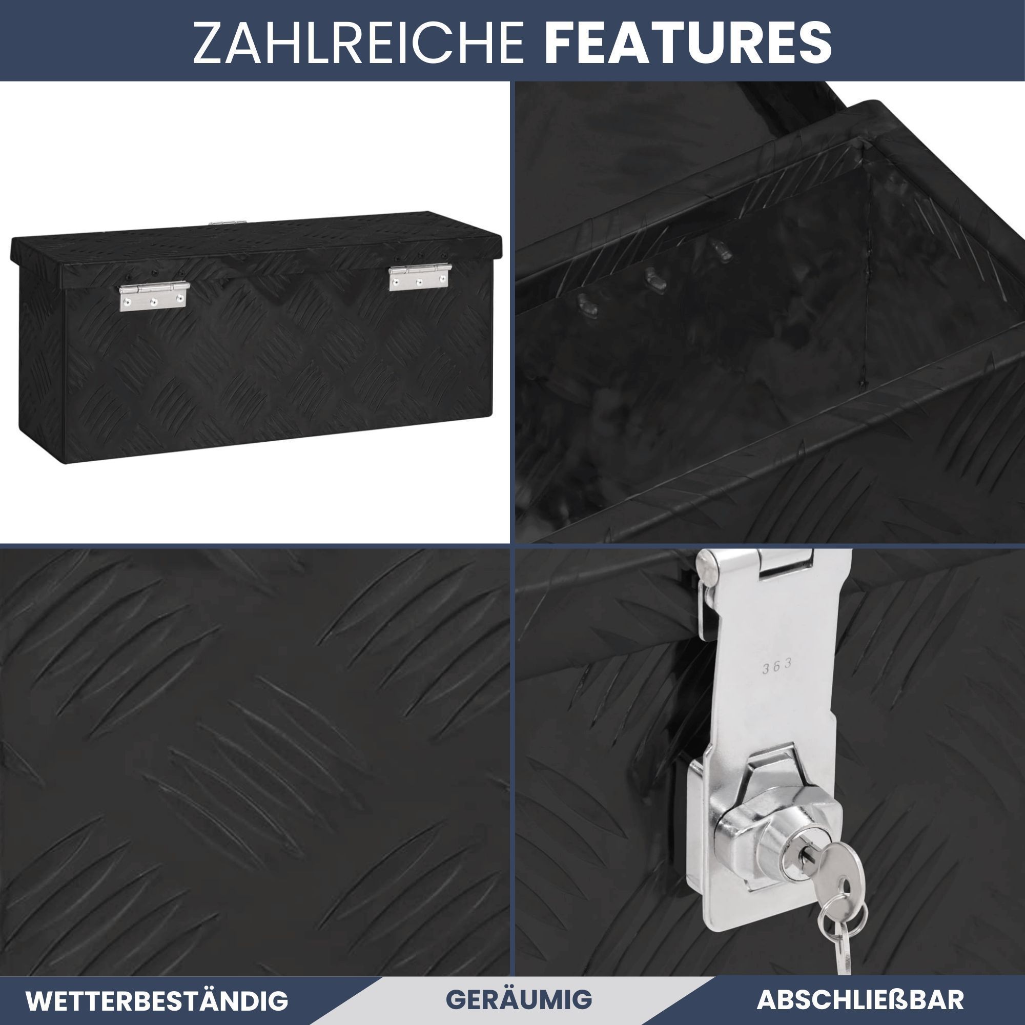 Aluminiumbox Deckel Abschließbar Alubox Deichselbox Alu Anhängerbox Werkzeugkiste