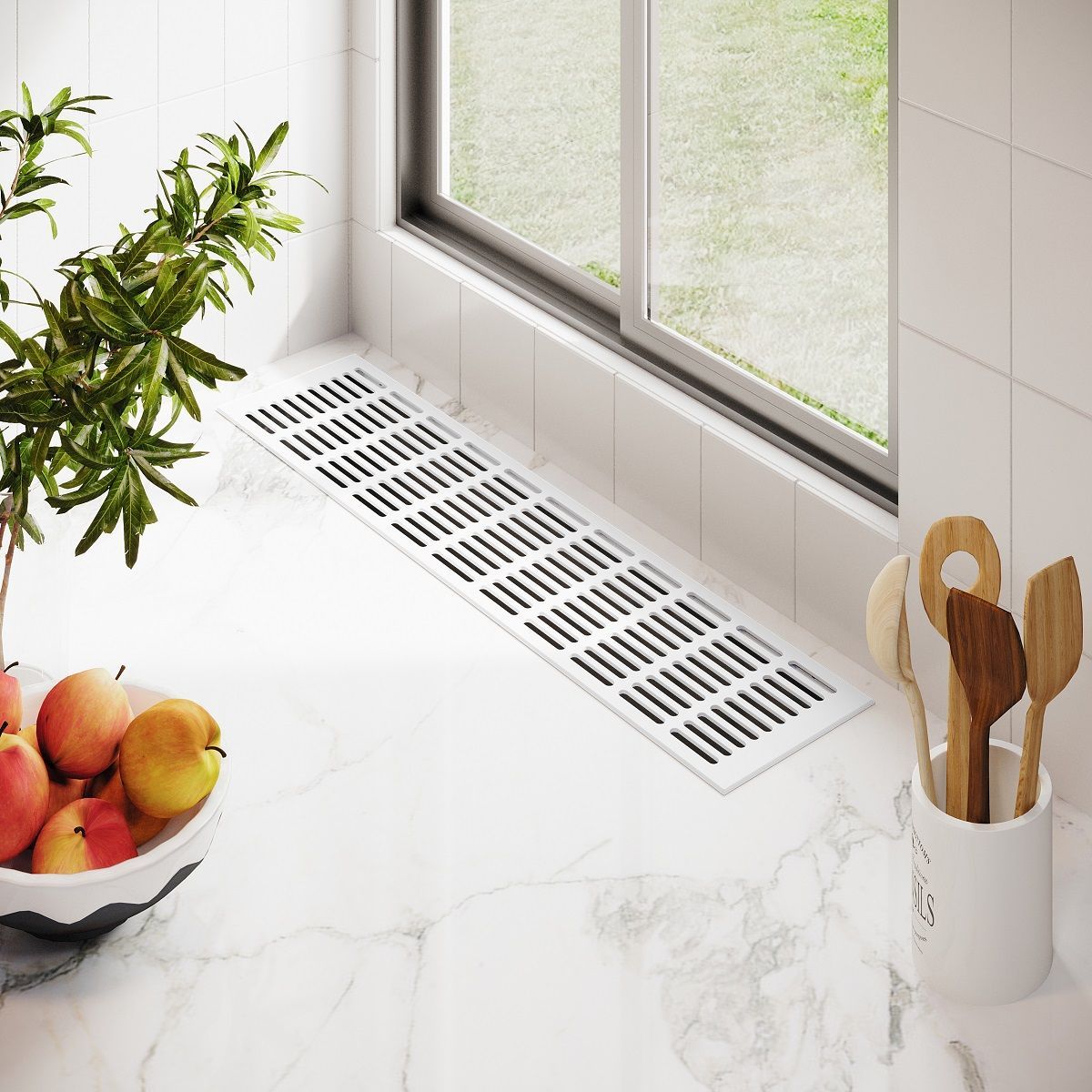 Aluminiumgitter 130mm breit Lüftungsgitter Stegblech Weiß RAL9016 Badlüftung