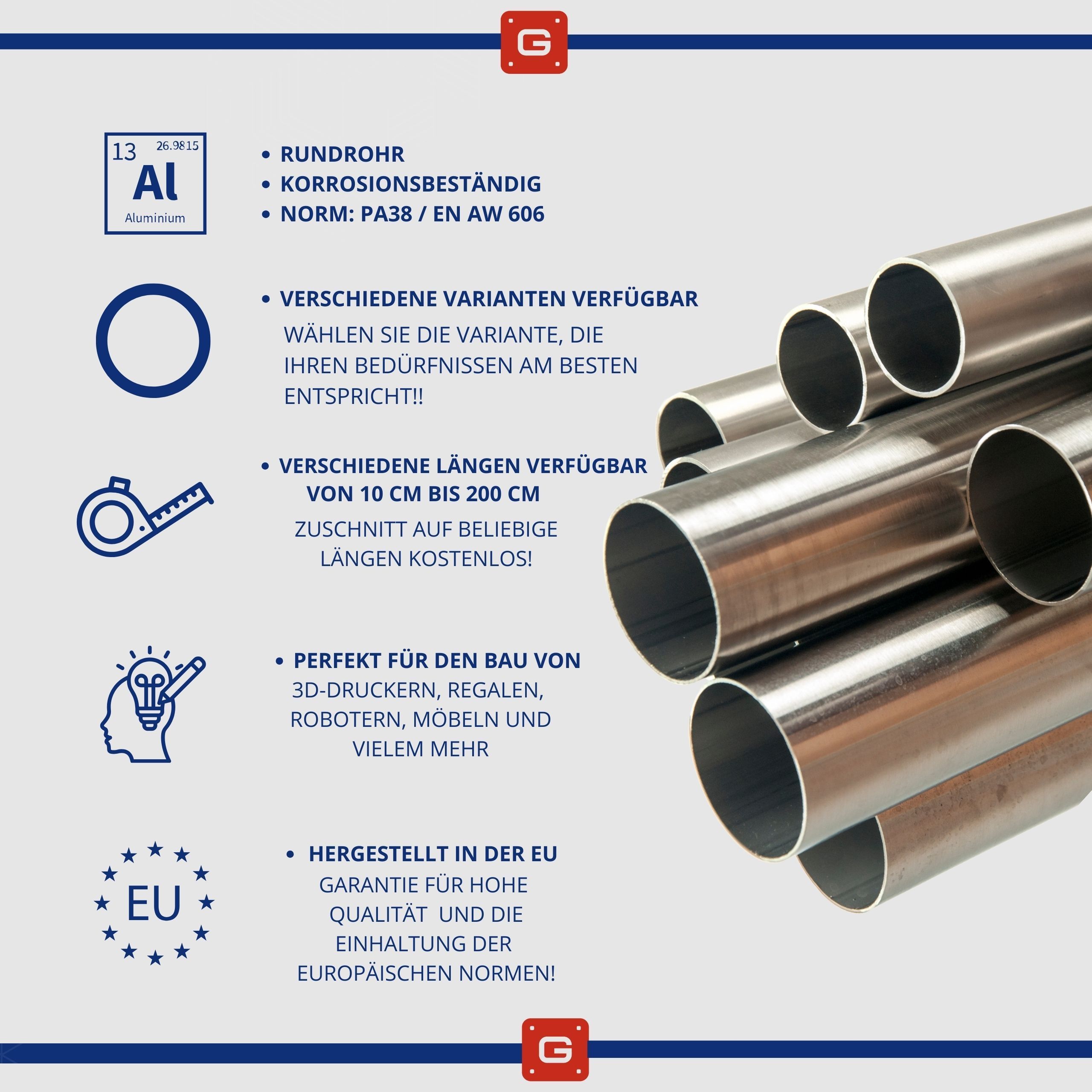 Alurohr Aluminium Profil Rohr Alu EN6060 Rundrohr viele Querschnitte