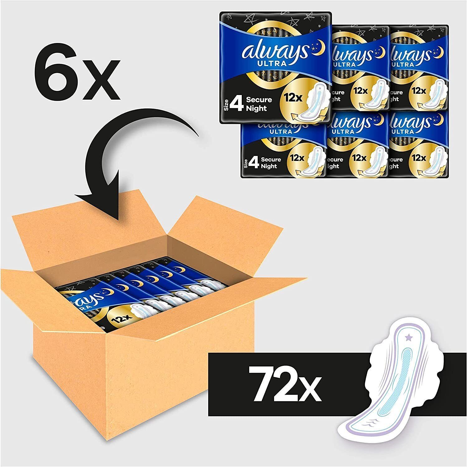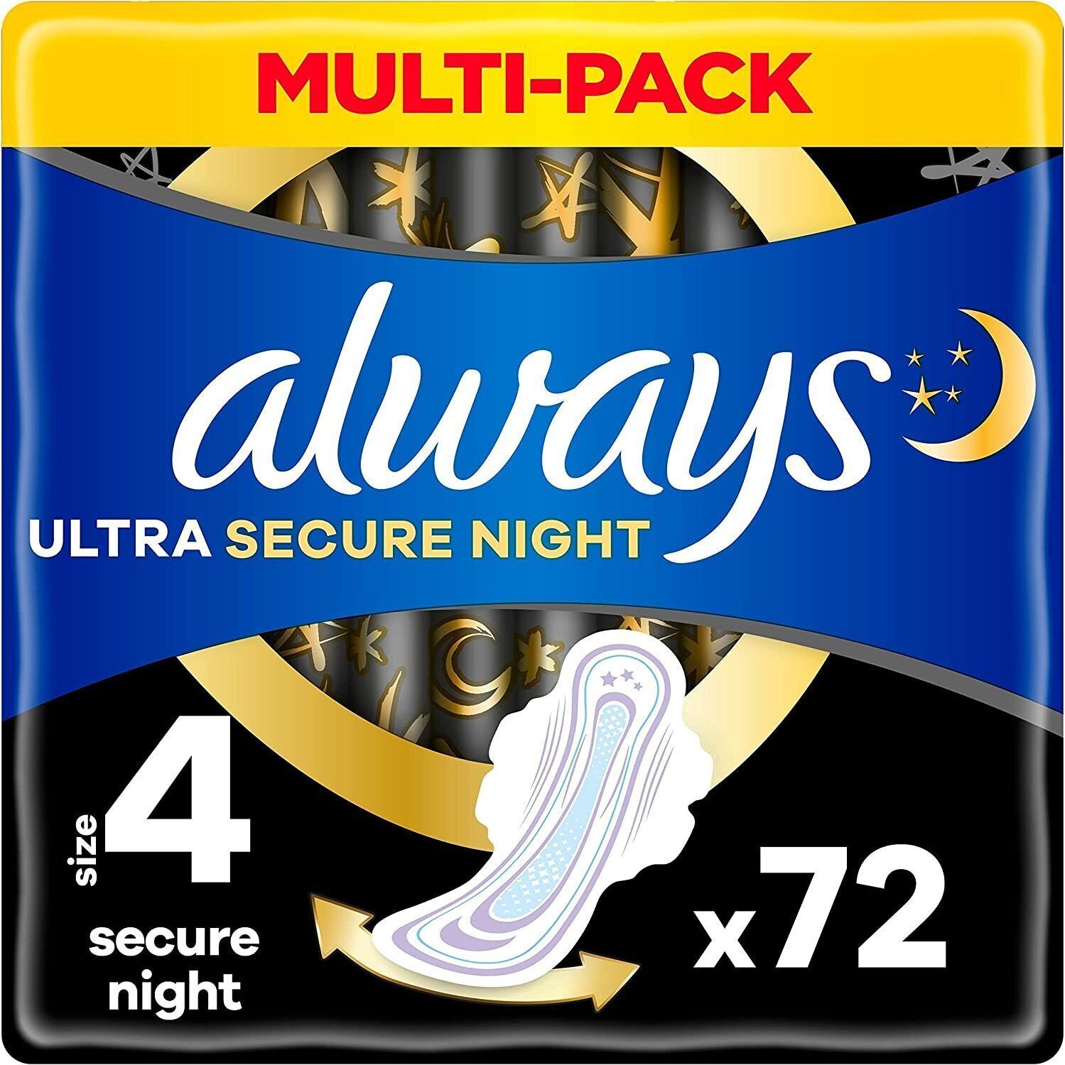 Always Always Ultra Binden Damen Größe 4 Secure Night Monatspaket 72 Binden Flégeln