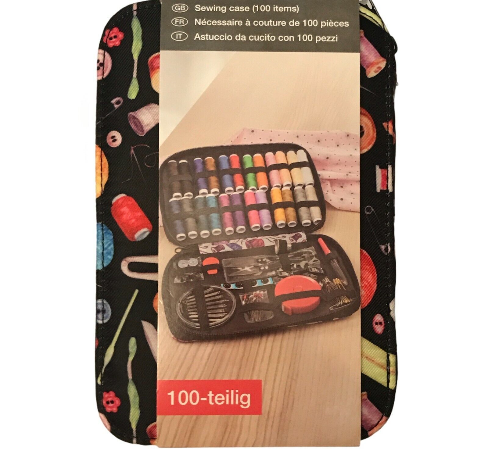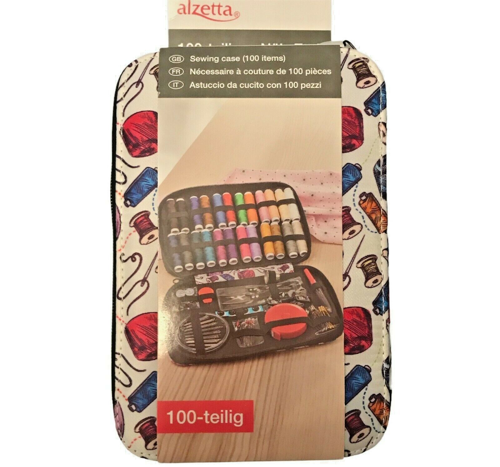 alzetta 100-teiliges Näh-Etui, Reise Set, Nähset, Starter Geschenk, schwarz weiß