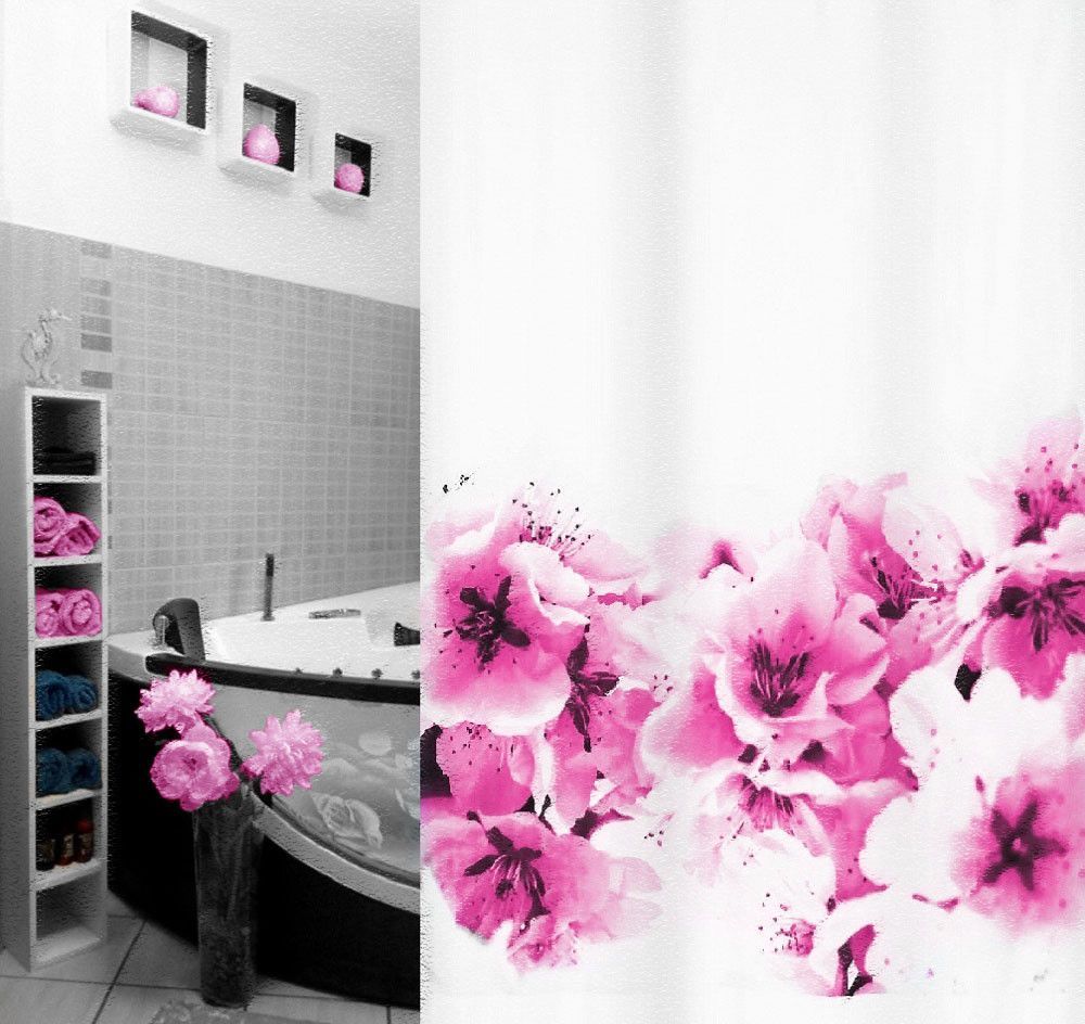 Amanda Pink Rosa Textil Duschvorhang 180x200cm. Blumenmotiv