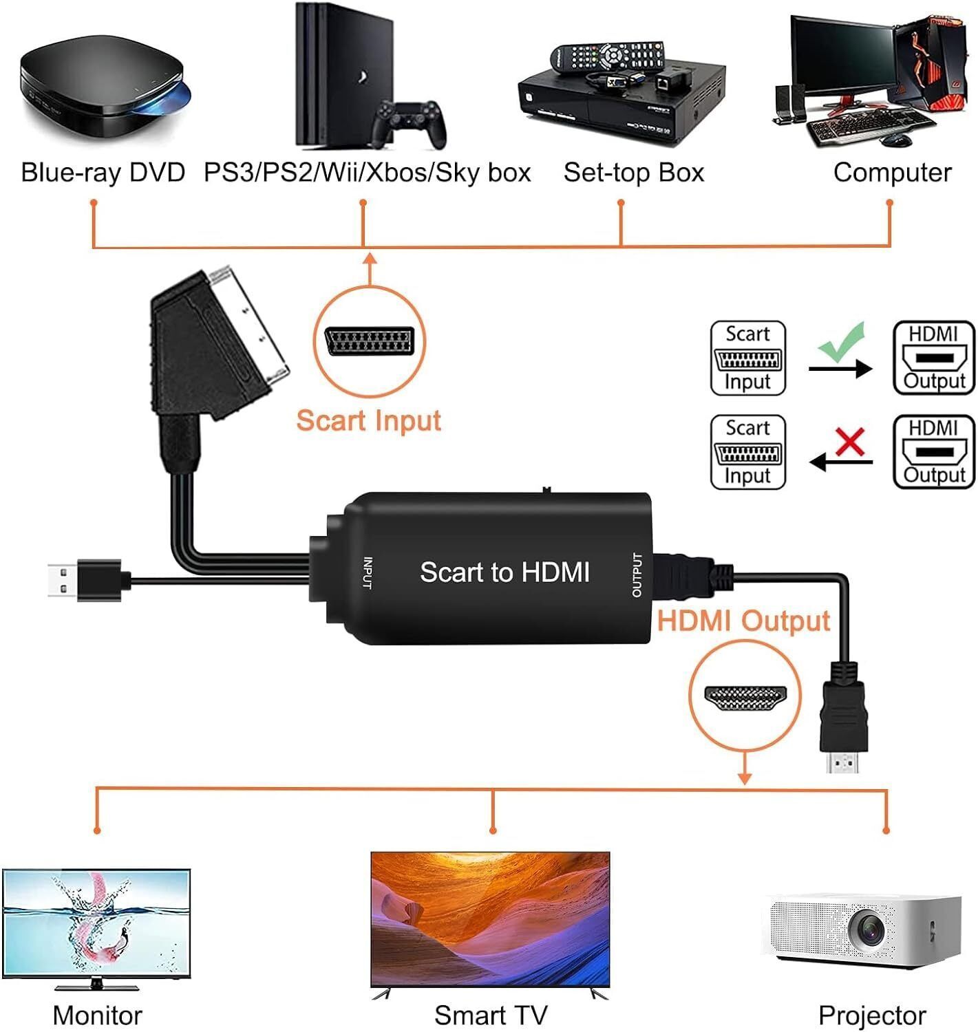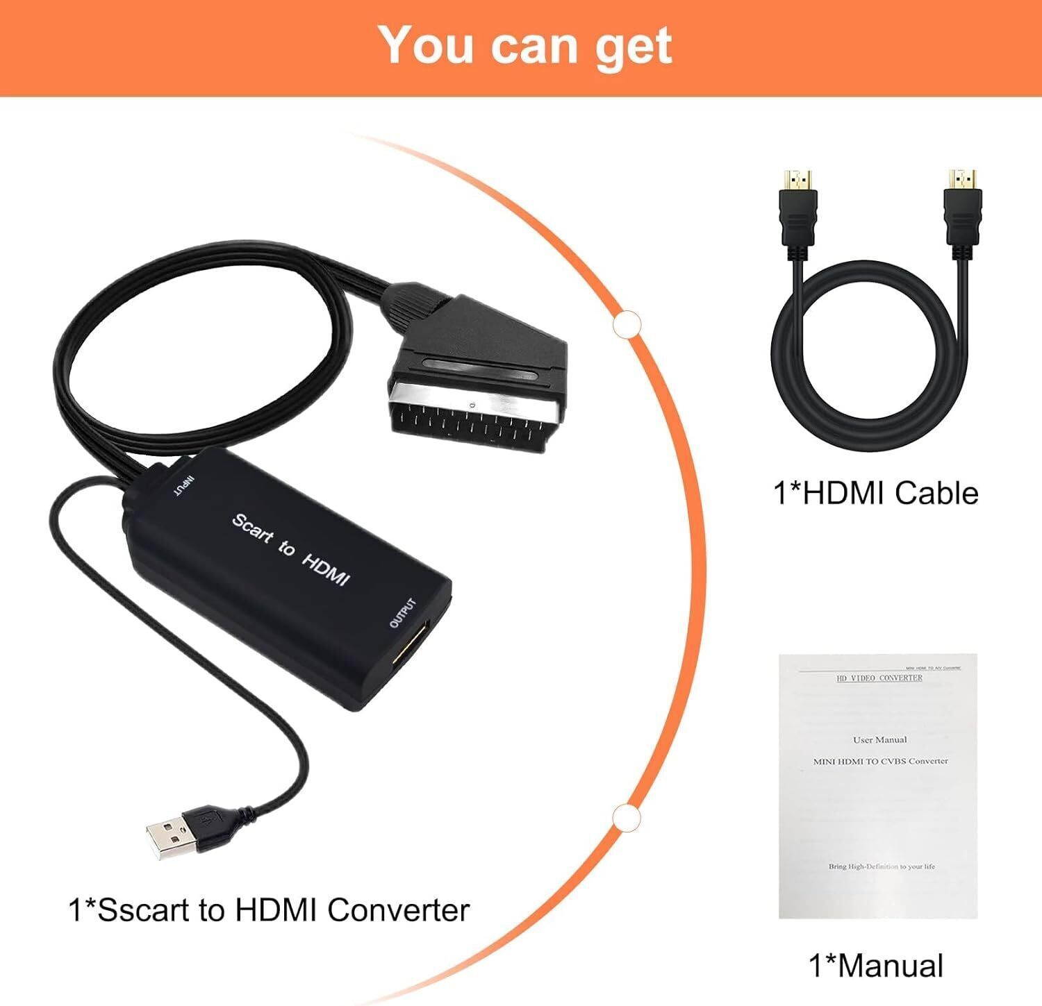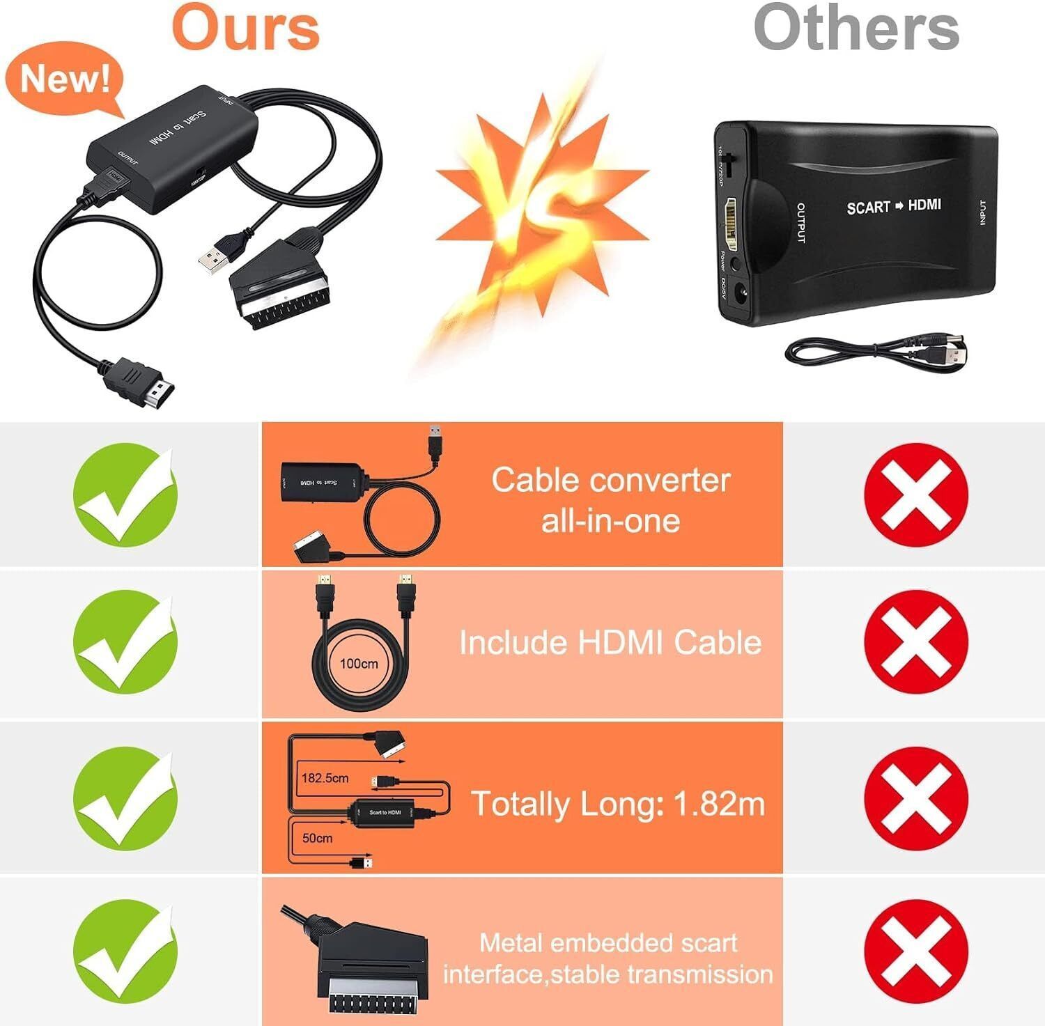 Art AMANKA Scart auf HDMI Konverter HD 1080P SCART zu HDMI Adapter mit Scart Kabel