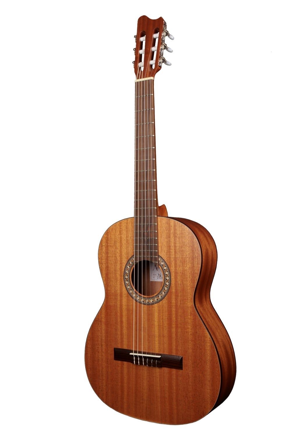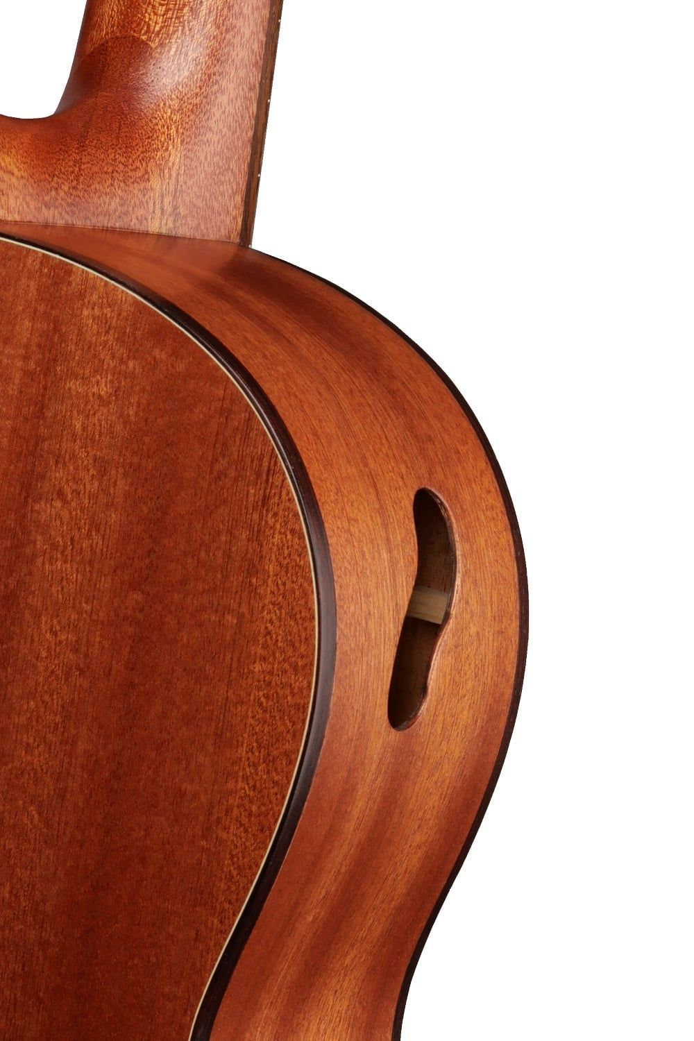 Amano 3S-SN - Sapelli Decke: Sapelli, massiv Boden und Zargen: Sapelli Hals: Okoume Griffbrett: Palisander Mensur: 65 cm Sattelbreite: 48 mm Mit Soundport Mechaniken: Vernickelt Gewicht: ca. 1,55 kg Farbe: Natural