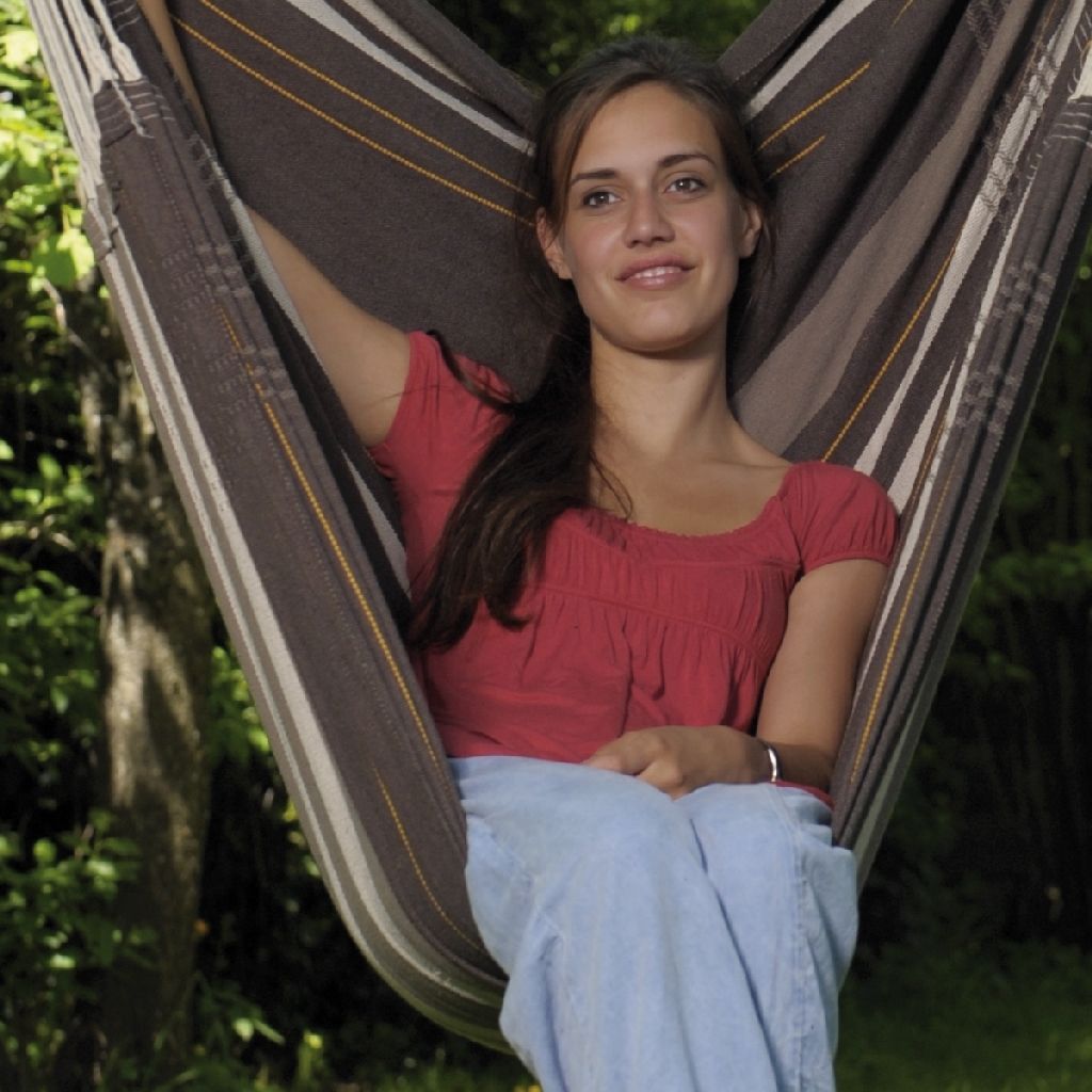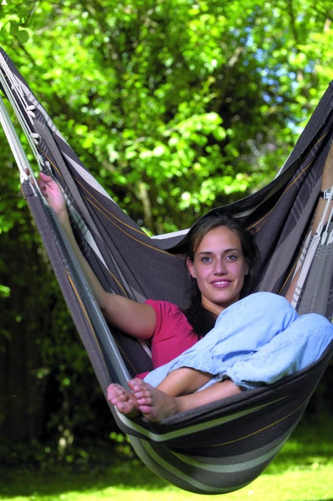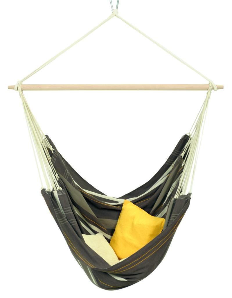 Der wahrscheinlich größte Hängesessel der Welt - bei den Ausmaßen eigentlich schon eher eine Hängematte. Wir verwenden den gleichen festen Stoff wie bei der XXXL-Hängematte Gigante, aufgespreizt mit einem gigantischen 1,40 m Holzstab, dessen patentierte Drechselung (innen dicker als außen) ein Verru