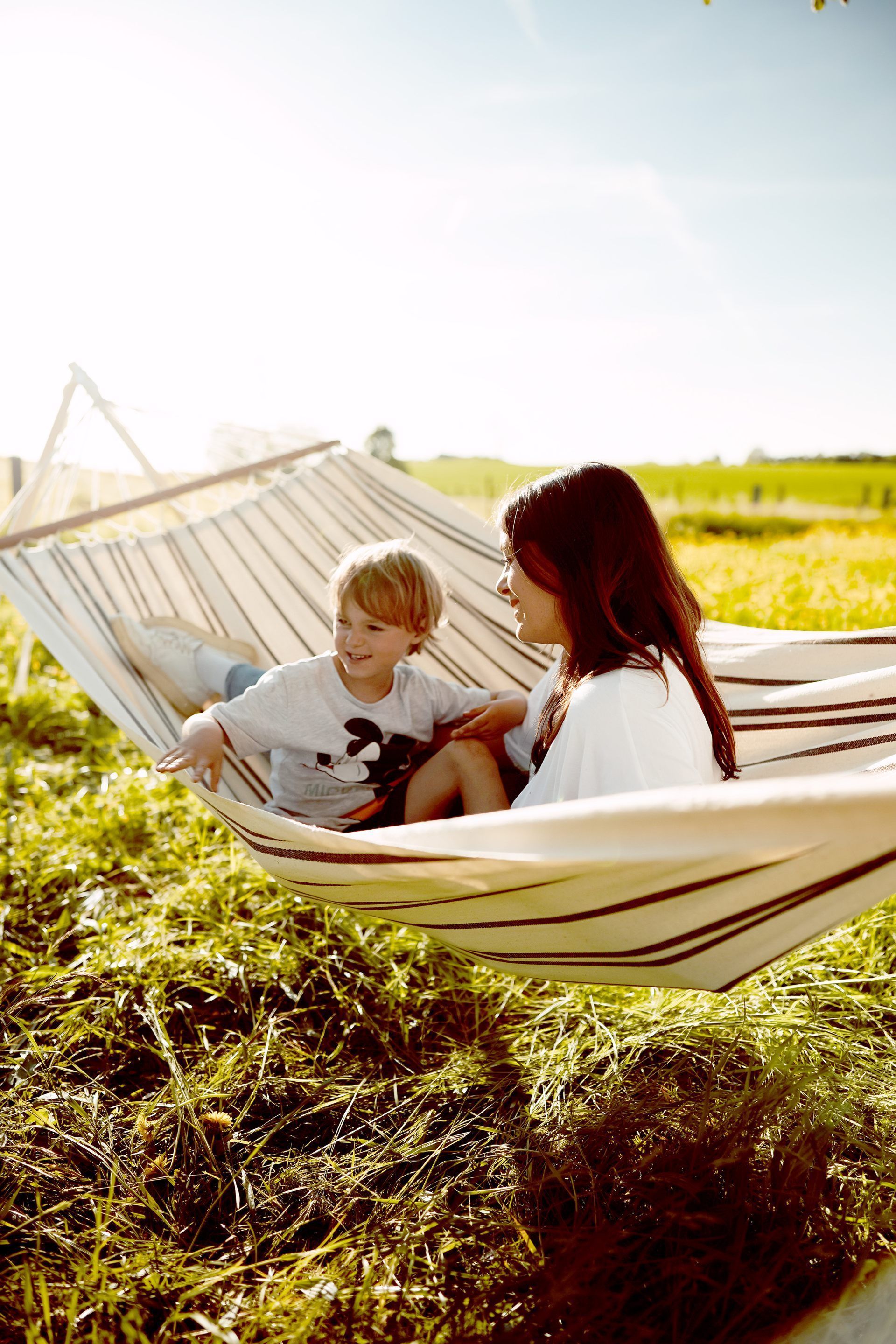 Wir haben es geschafft, unsere Stabhängematten so bequem zu machen, wie die klassischen Brasilianischen ohne Stab: Indem wir zum Einen speziellen, herrlich weichen und dehnbaren Baumwollfaden in dichter Qualität verwenden (350 g m²), zum Anderen indem wir den Stoff bedeutend breiter als den Stab mac