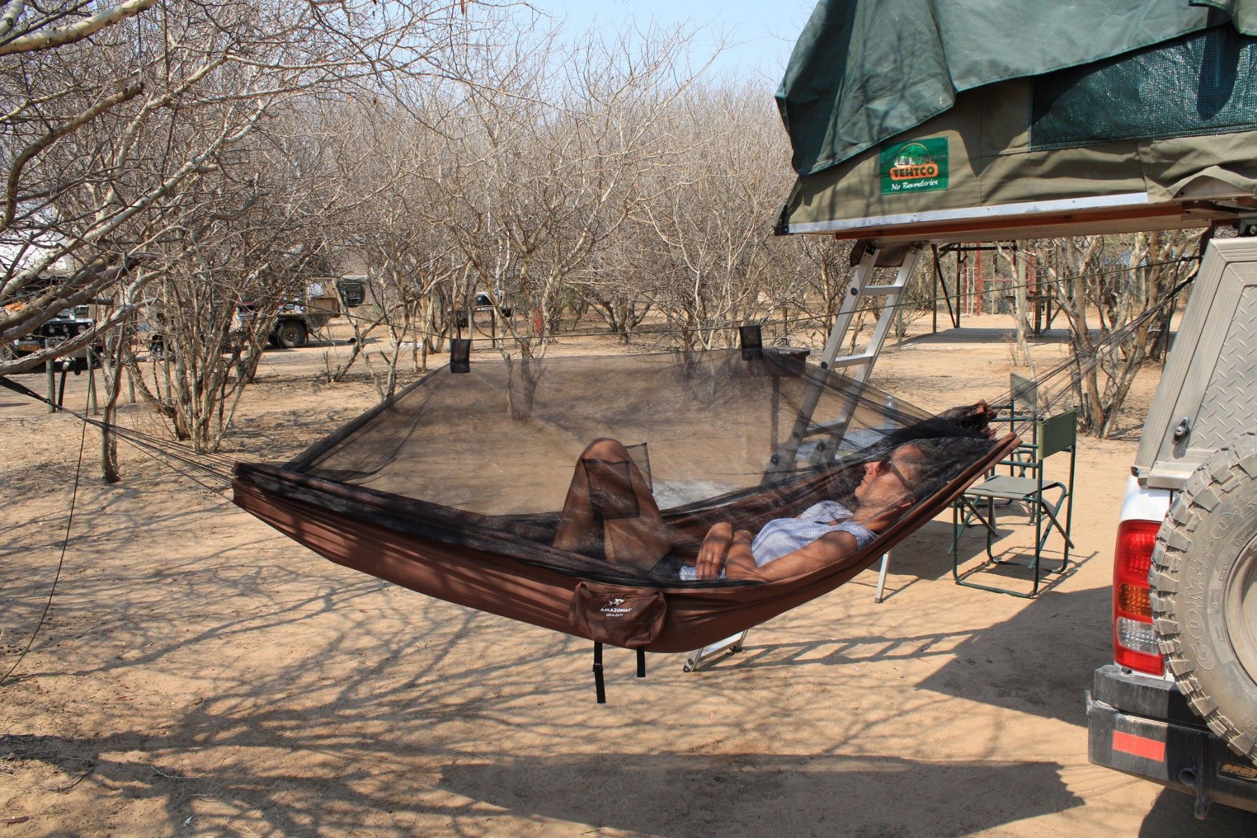 • • Max. Belastung: 150 kg • Aufhängehöhe ? 195 cm an stabilen Punkten • Netz, Reißverschlüsse & Ösen prüfen • Bodenabstand: 40–50 cm • Kinder nur beaufsichtigt