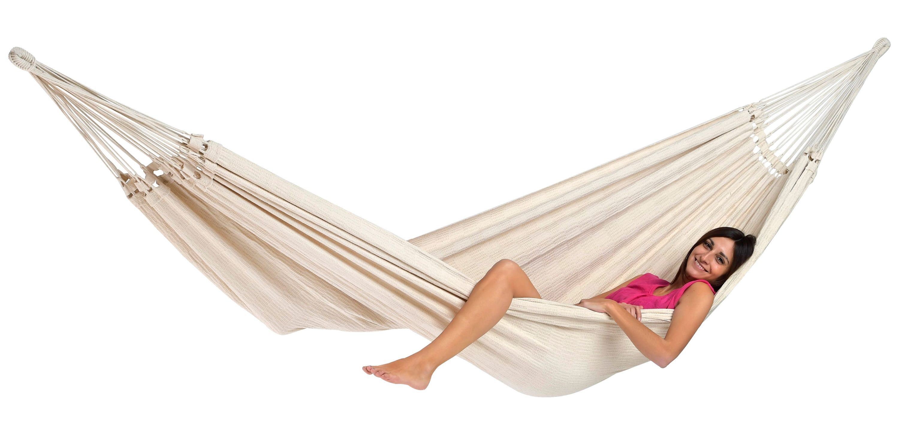 Paradiso ist höchster brasilianischer Hängemattenkomfort und etwas ganz Besonderes: Nur wenige Webstühle sind geeignet, ein 1,75 m breites Tuch herzustellen. Um diese riesige Hängematte gleichzeitig extra stabil und superweich zu bekommen, werden knapp 5.000 Fäden miteinander verwoben! Die extra-dic
