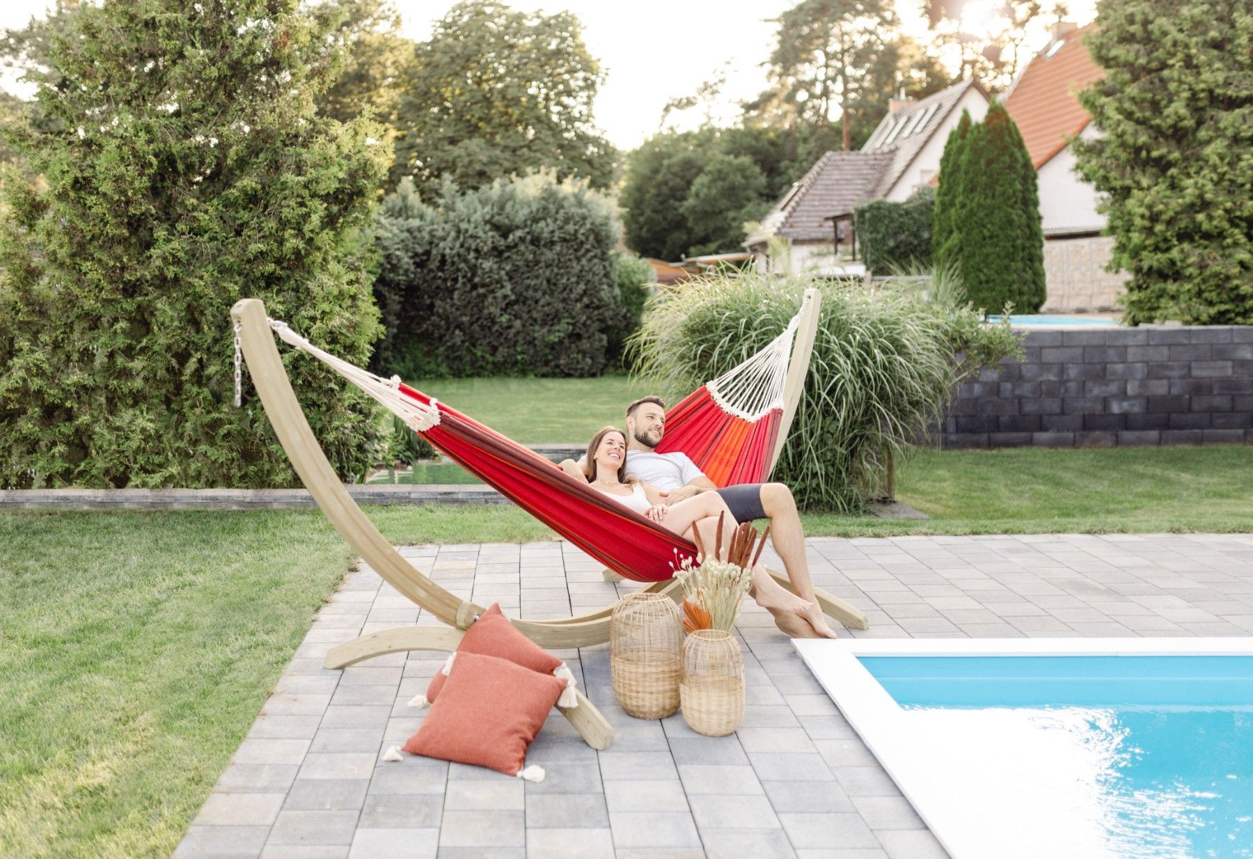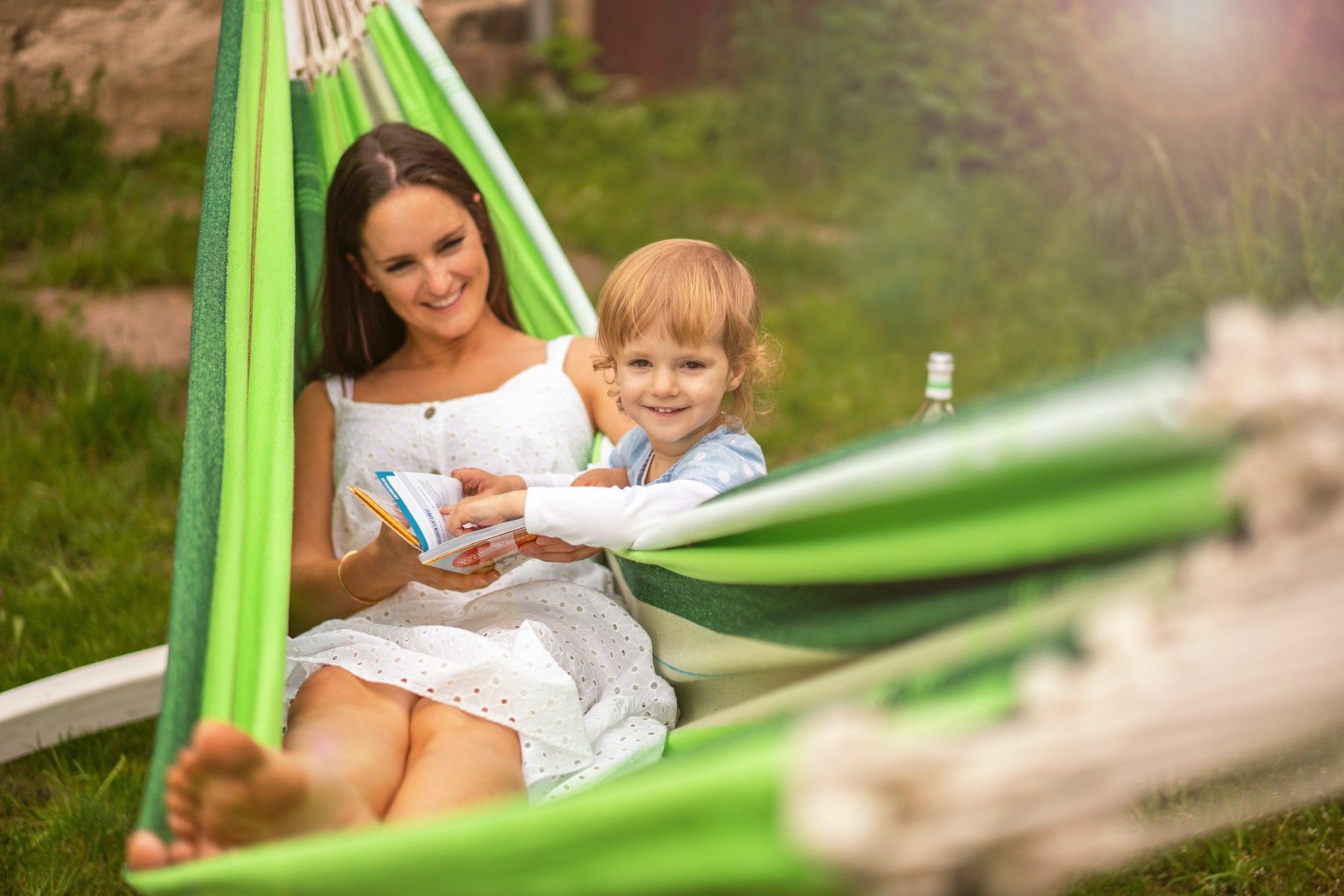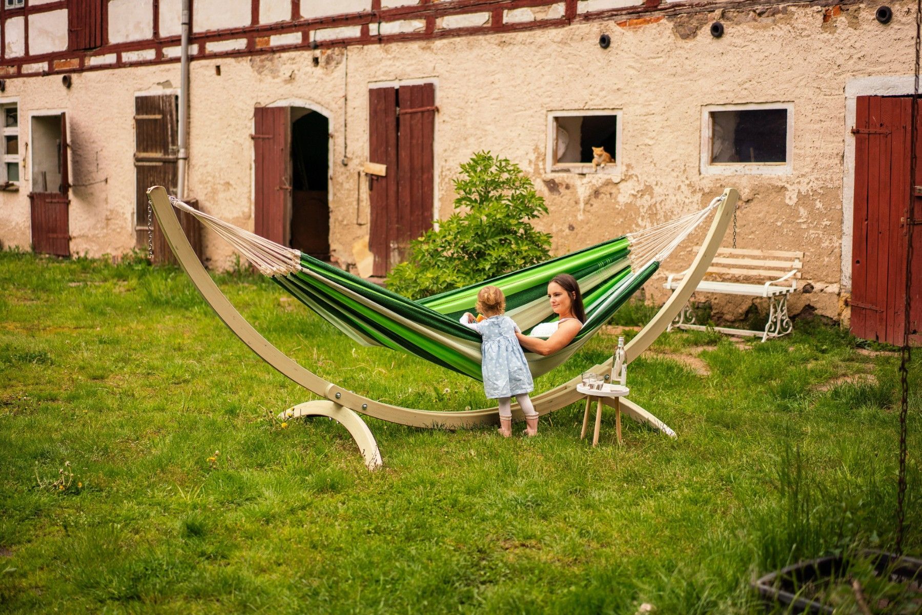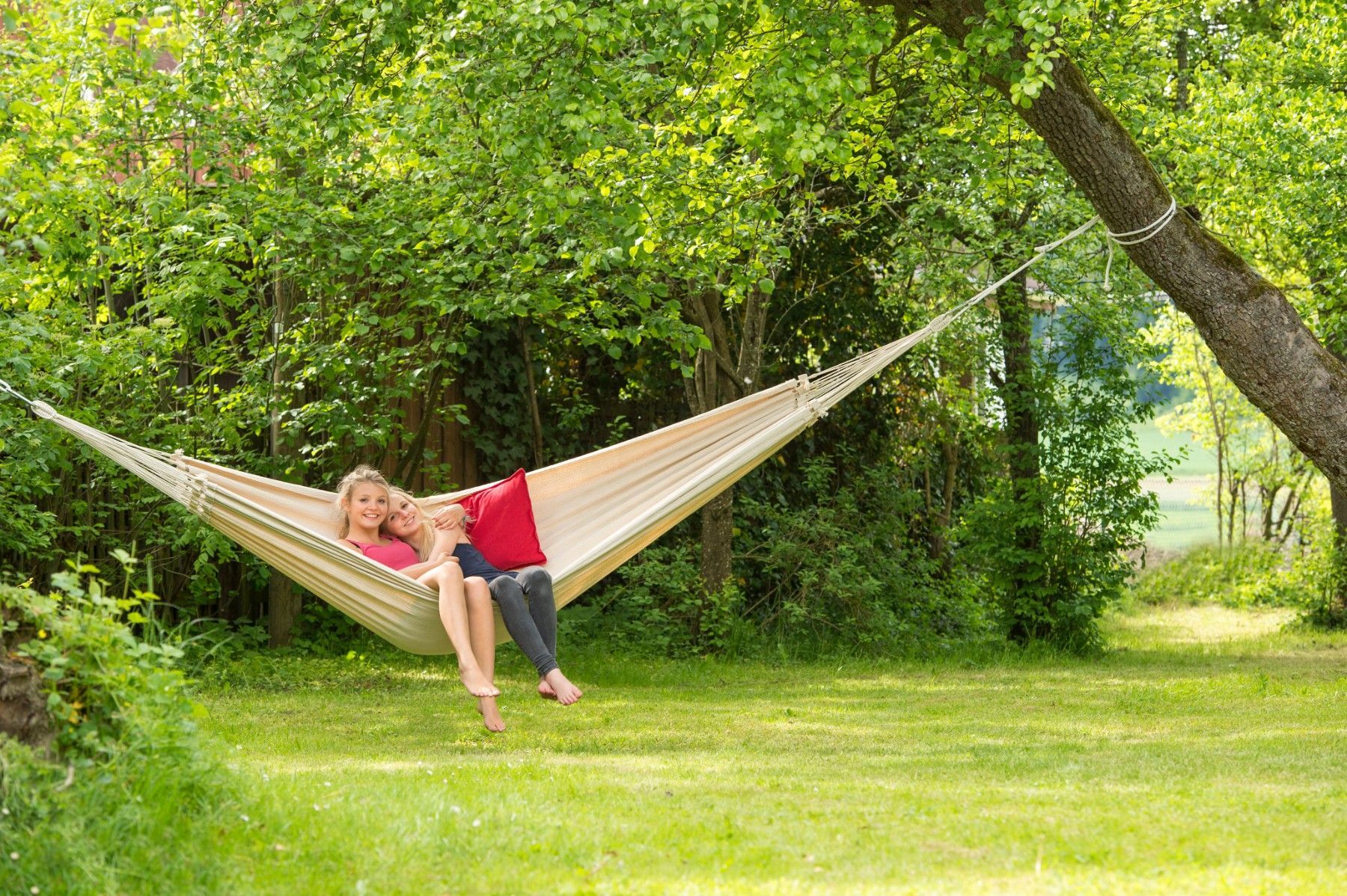 • • Vor jeder Nutzung Aufhängung, Seile und Stoff auf Schäden prüfen. • Nur an stabilen, tragfähigen Befestigungspunkten anbringen. • Empfohlener Bodenabstand: ca. 40–50 cm. • Nicht in der Nähe von offenem Feuer oder scharfen Gegenständen verwenden. • Kinder nur unter Aufsicht schaukeln lassen. • Hängematte bei Regen oder Frost geschützt aufbewahren.