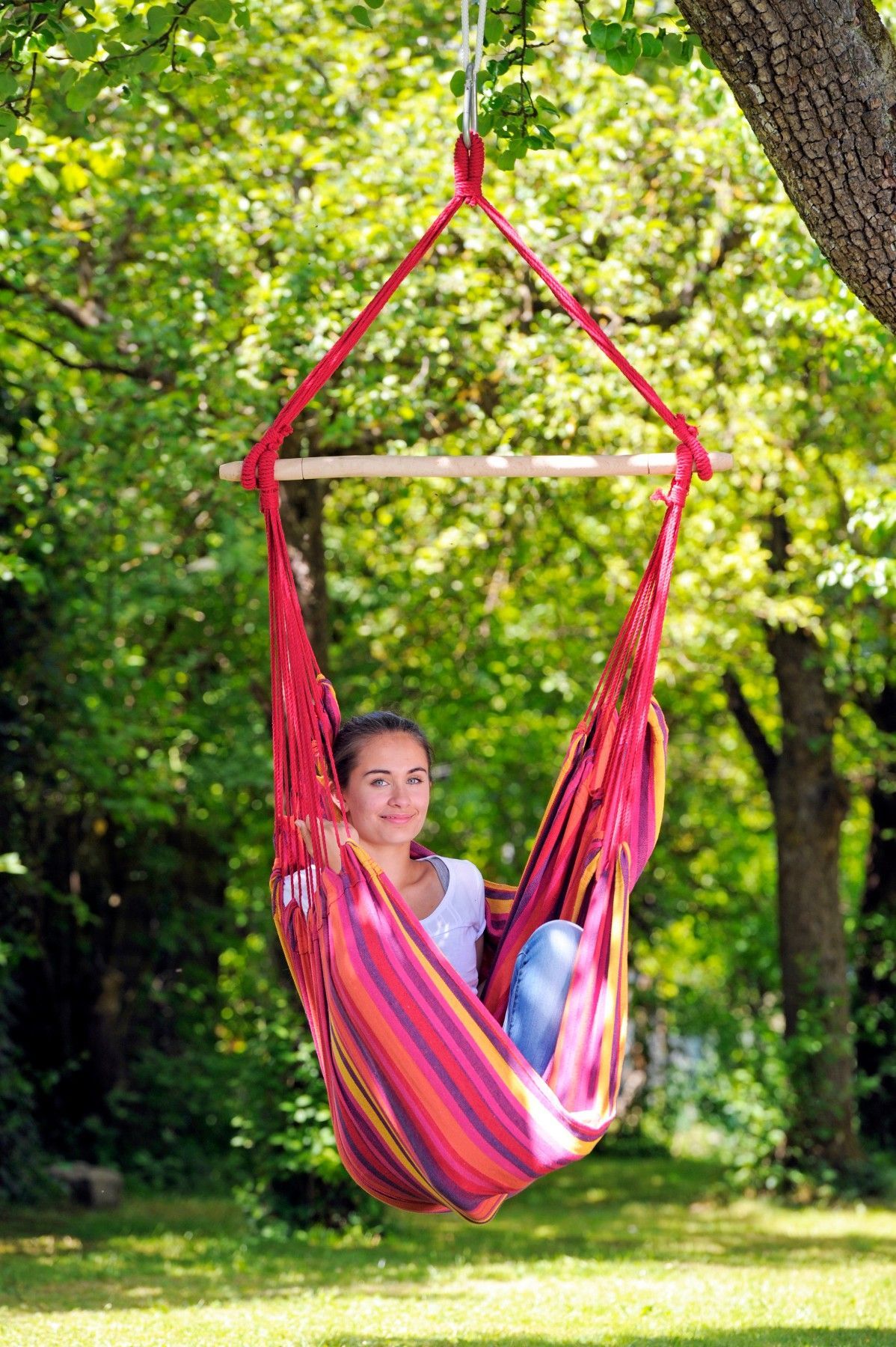 • • Nur für den privaten Gebrauch bestimmt (max. Belastung laut Herstellerangabe beachten). • Hängesessel nur an stabilen, tragfähigen Punkten oder passenden Gestellen befestigen. • Empfohlene Aufhängehöhe: mind. 195?cm; Bodenabstand: ca. 40–50?cm. • Nicht in der Nähe von offenem Feuer oder scharfen Gegenständen verwenden. • Vor jeder Nutzung Aufhängung, Seile und Stoff prüfen. • Kinder nur unter Aufsicht verwenden lassen. • Bei starkem Regen oder Frost geschützt lagern.