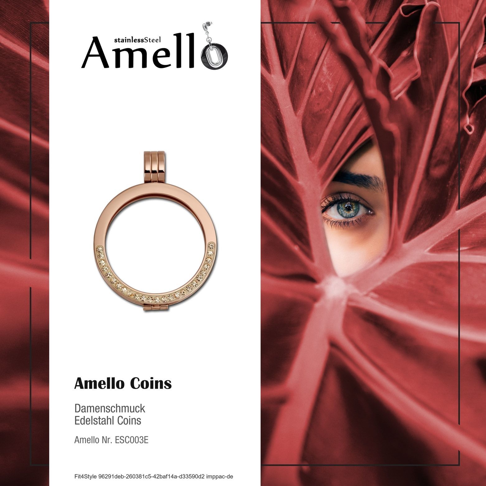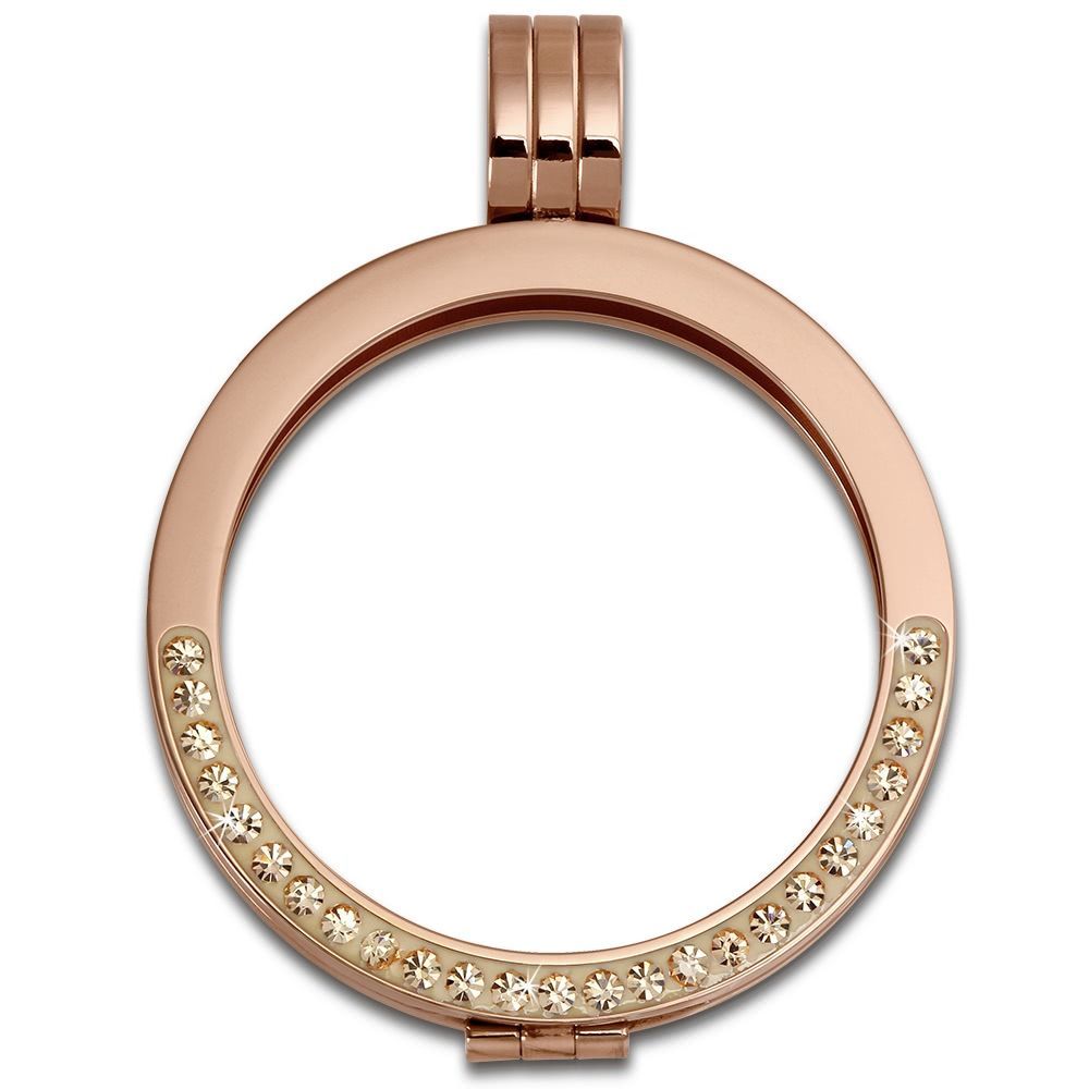 Ein schöner Amello Zirkonia weiß Marken-Coin Anhänger für Ketten mit der Bestellnummer ESC003E für Damen in der Farbe rose vergoldet. Der bezaubernde Edelstahl Kettenanhänger ist aus der Amello Coins Halsschmuck-Kollektion.