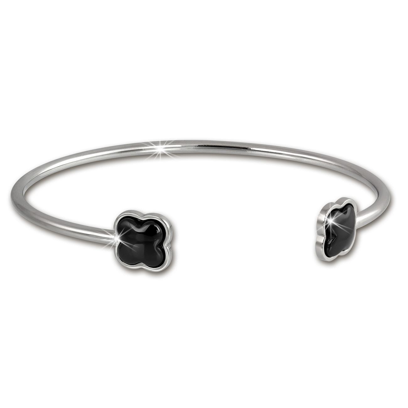 Amello Armreifen Damen Kleeblatt Edelstahl Keramik silber schwarz ESAX25S5
