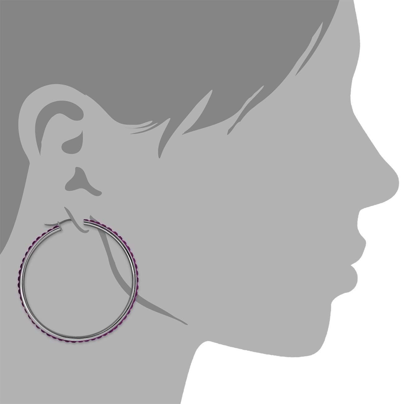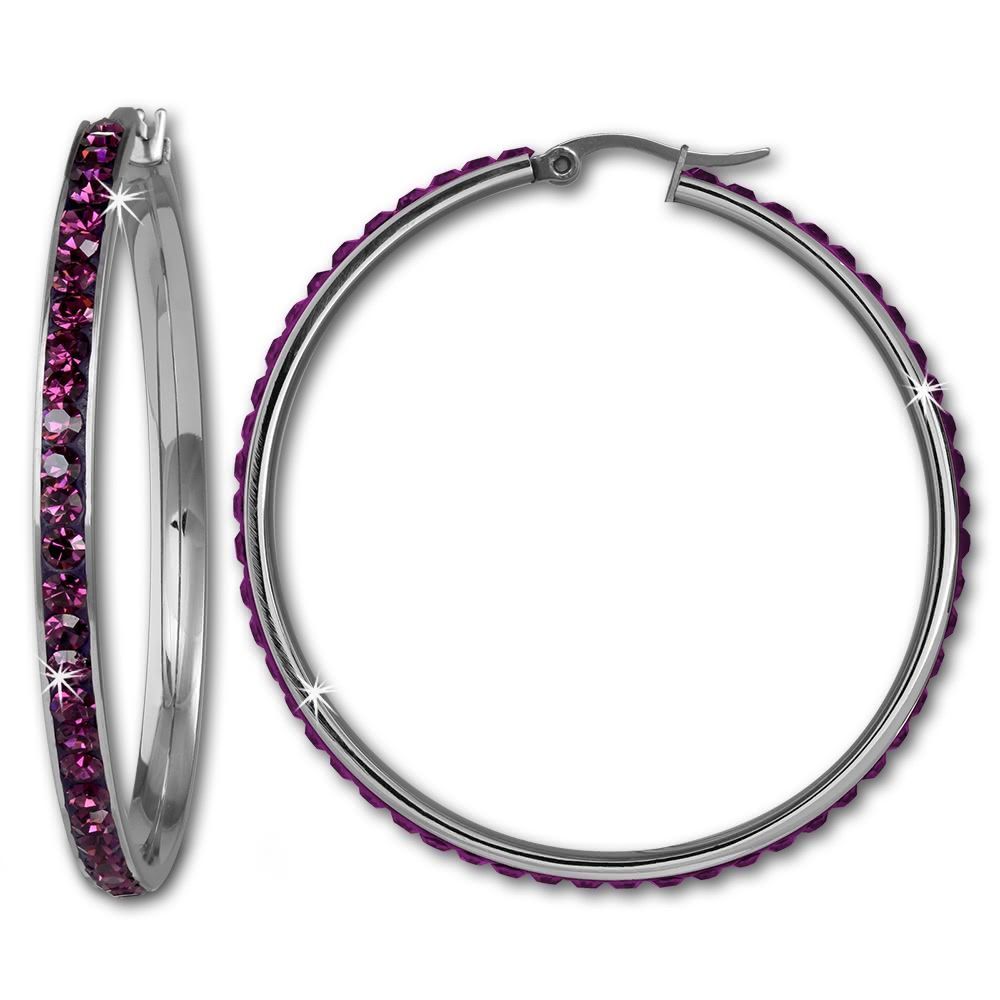 Ein Paar Amello Marken-Creolen mit der Bestellnummer ESOS05F für Damen in pink flieder. Die glitzernde Zirkonias Ohrringe aus der Amello Ohrschmuck-Kollektion sind aus Edelstahl.
