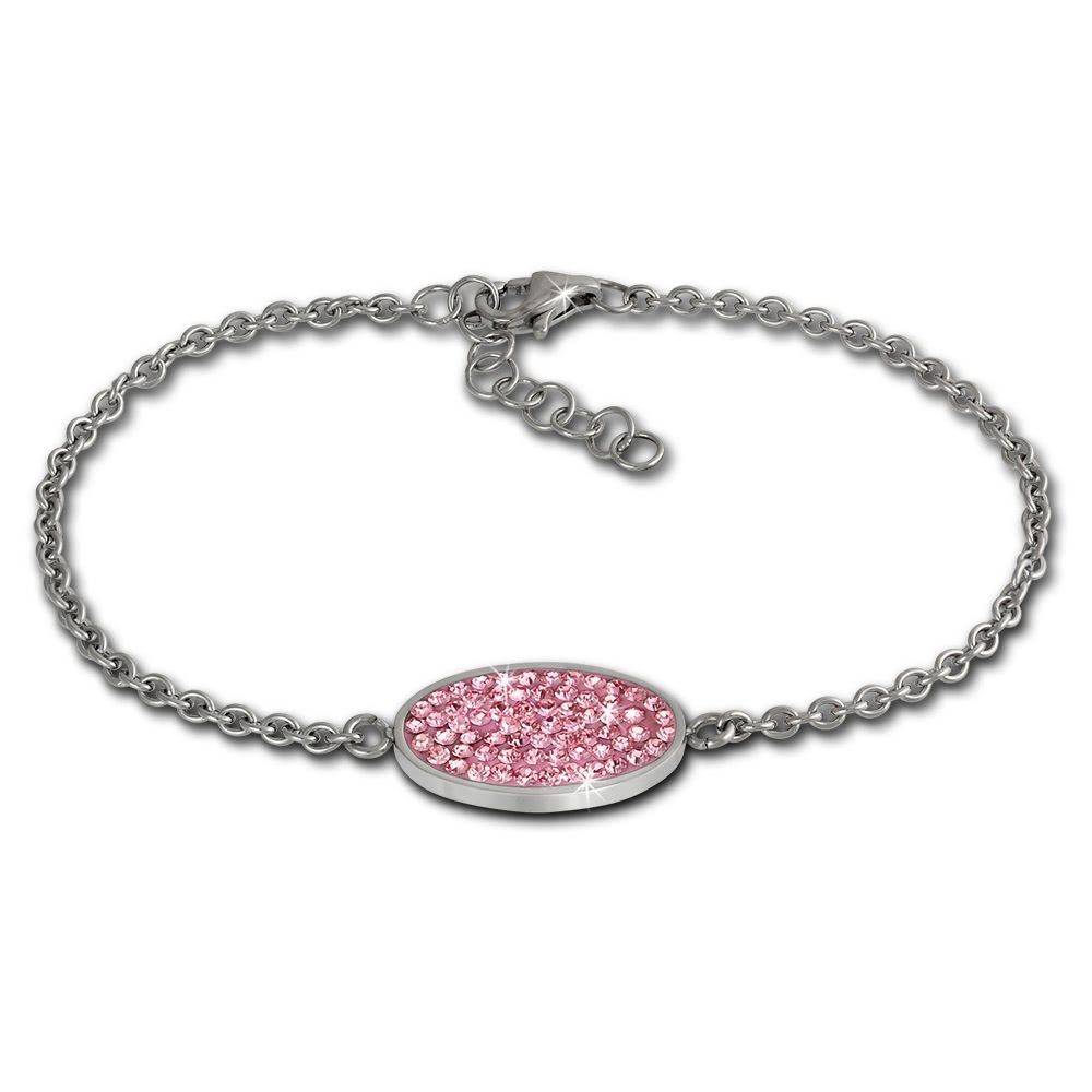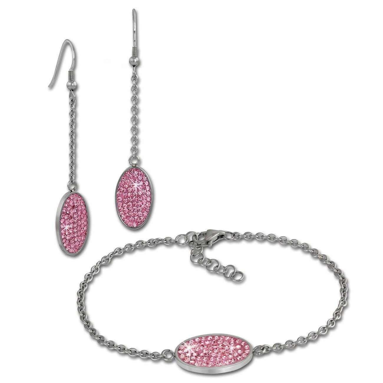 Amello Edelstahl Schmuckset Ohrringe & Armband Zirkonia Glitzer rosa ESSS03A