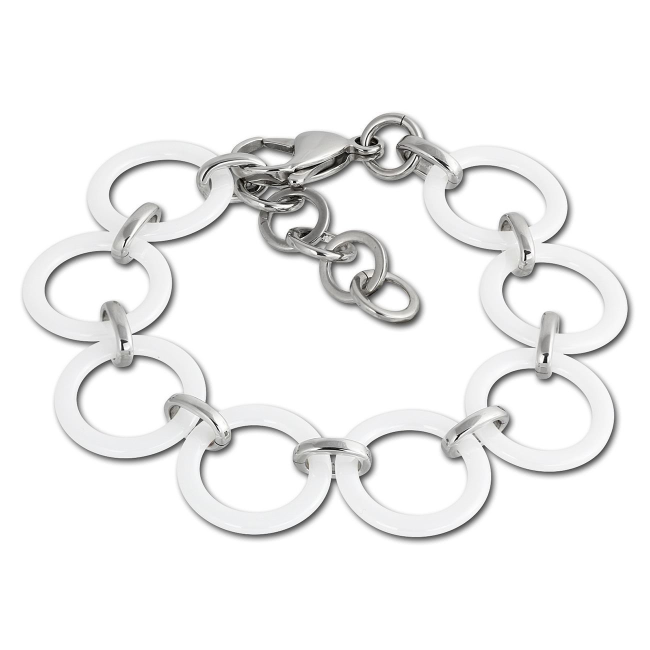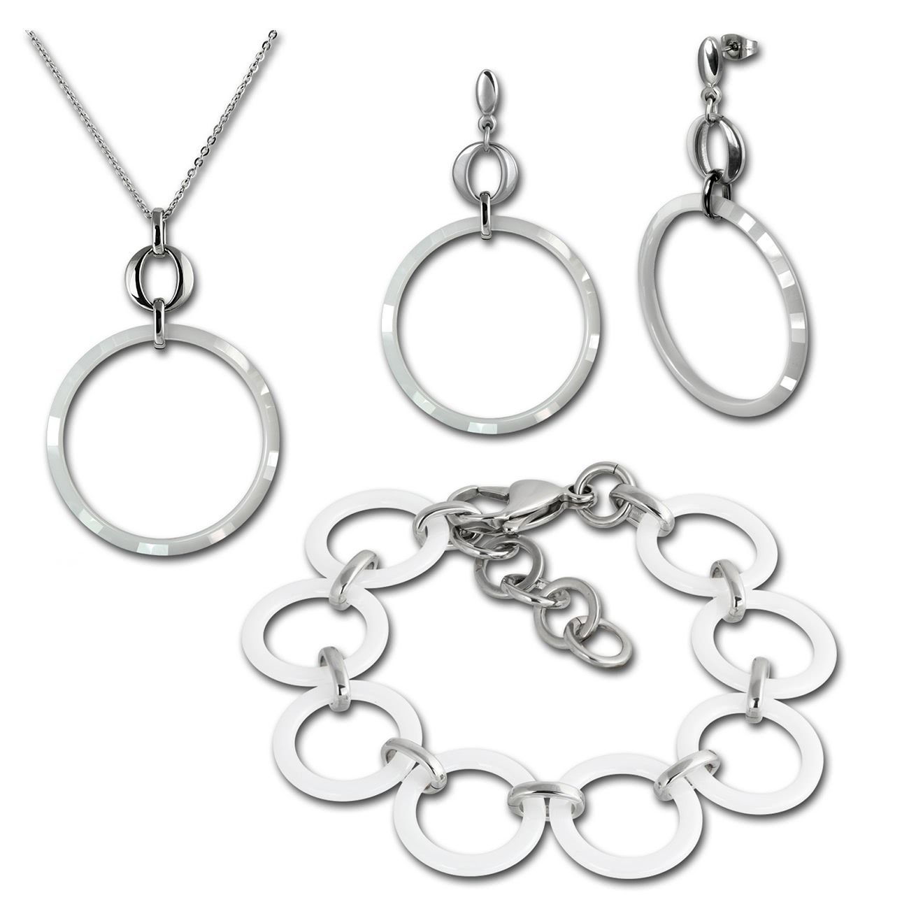Stilvoll, edles Schmuck-Set aus Edelstahl und Keramik -Circle-, weiß edelstahl - beinhaltet: Halskette, Armband und Ohrringe - aus dem Amello-Edelstahl-Sortiment.