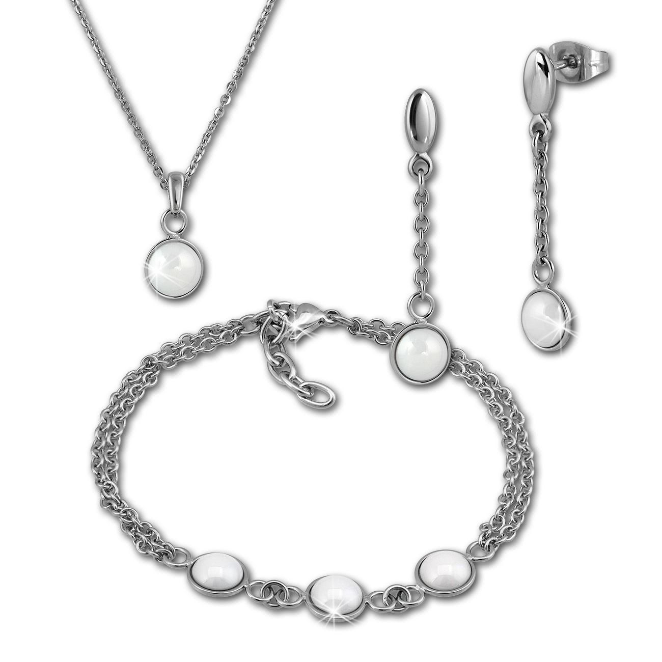 Amello Edelstahlschmuckset Halbkugel Keramik Kette, Armband, Ohrring ESSX36W