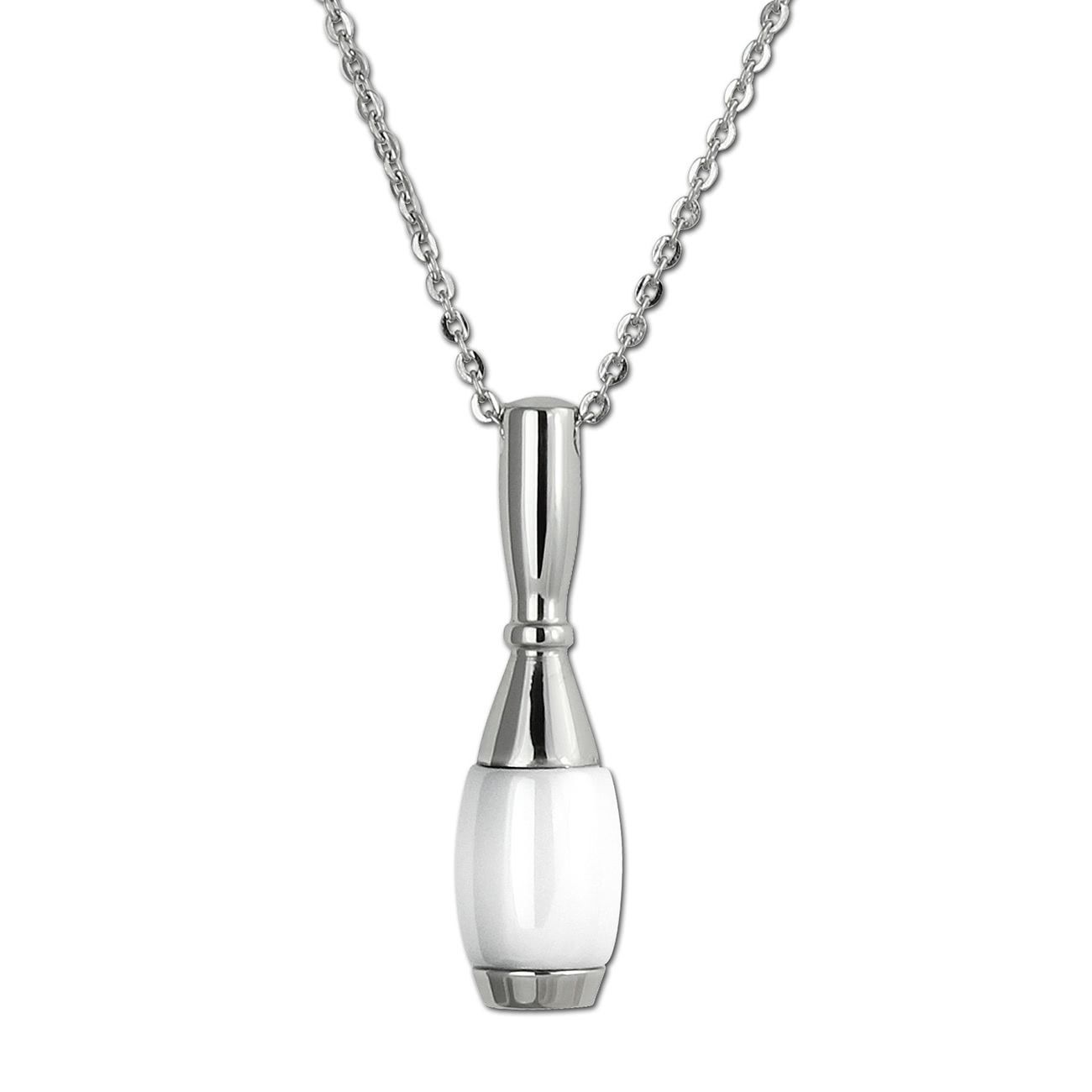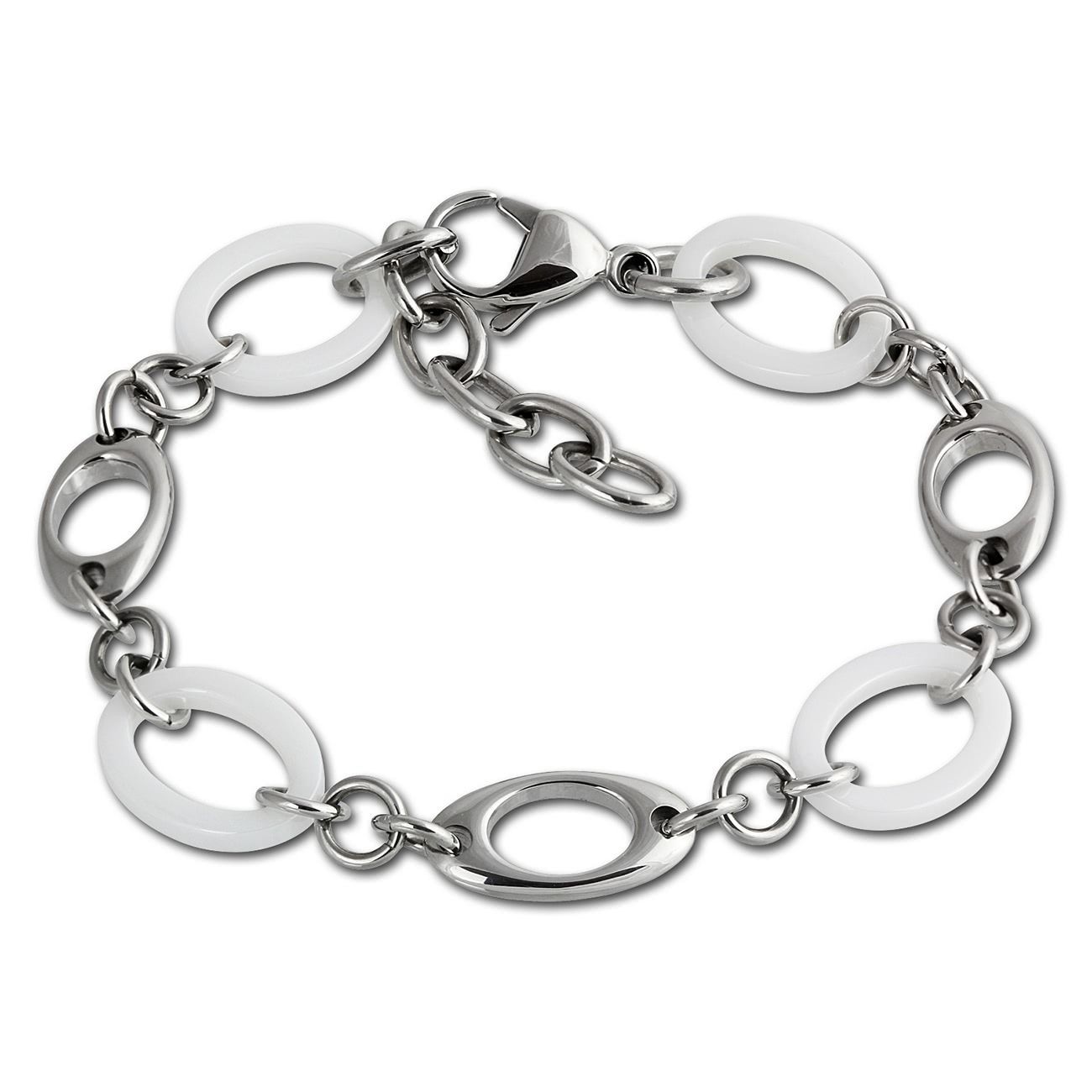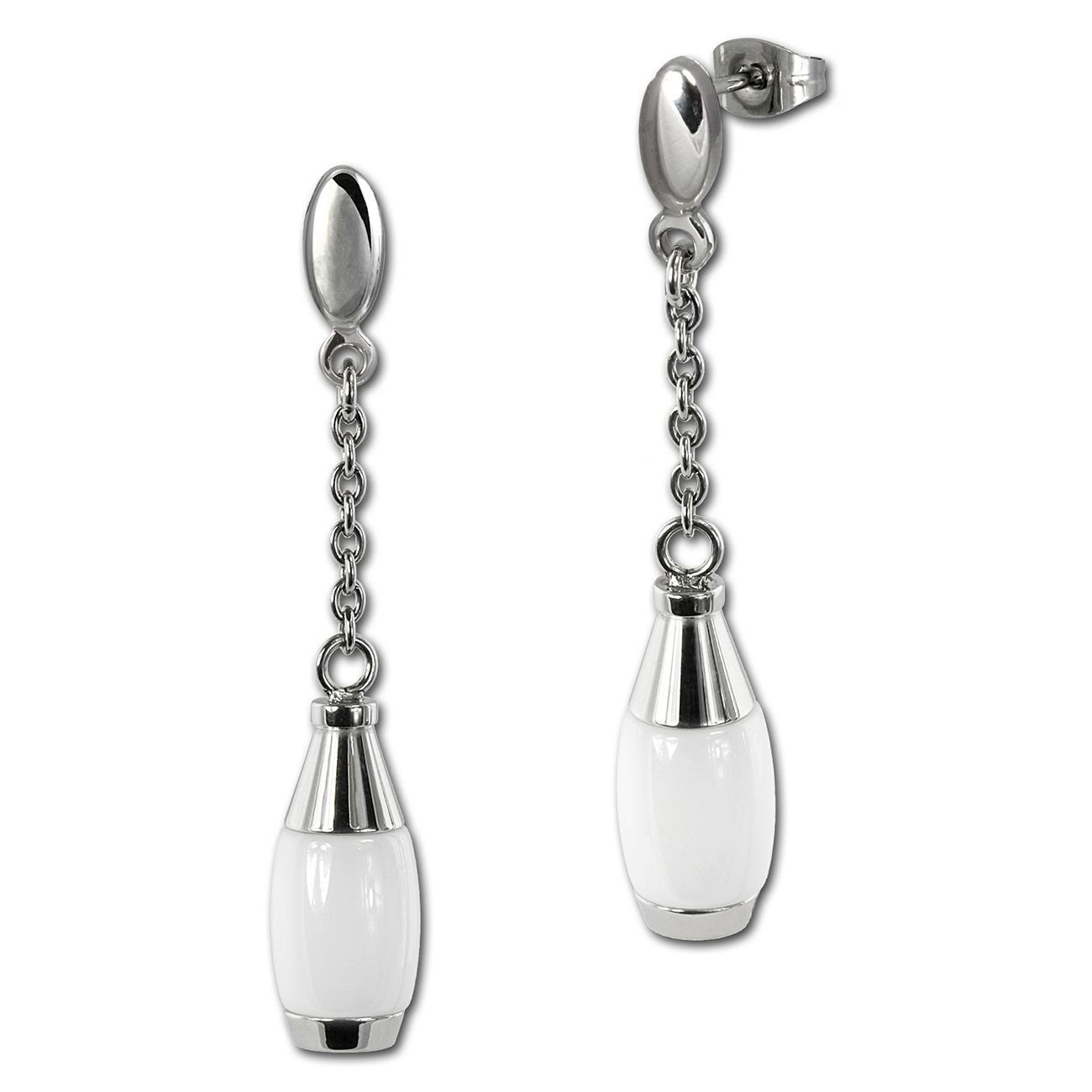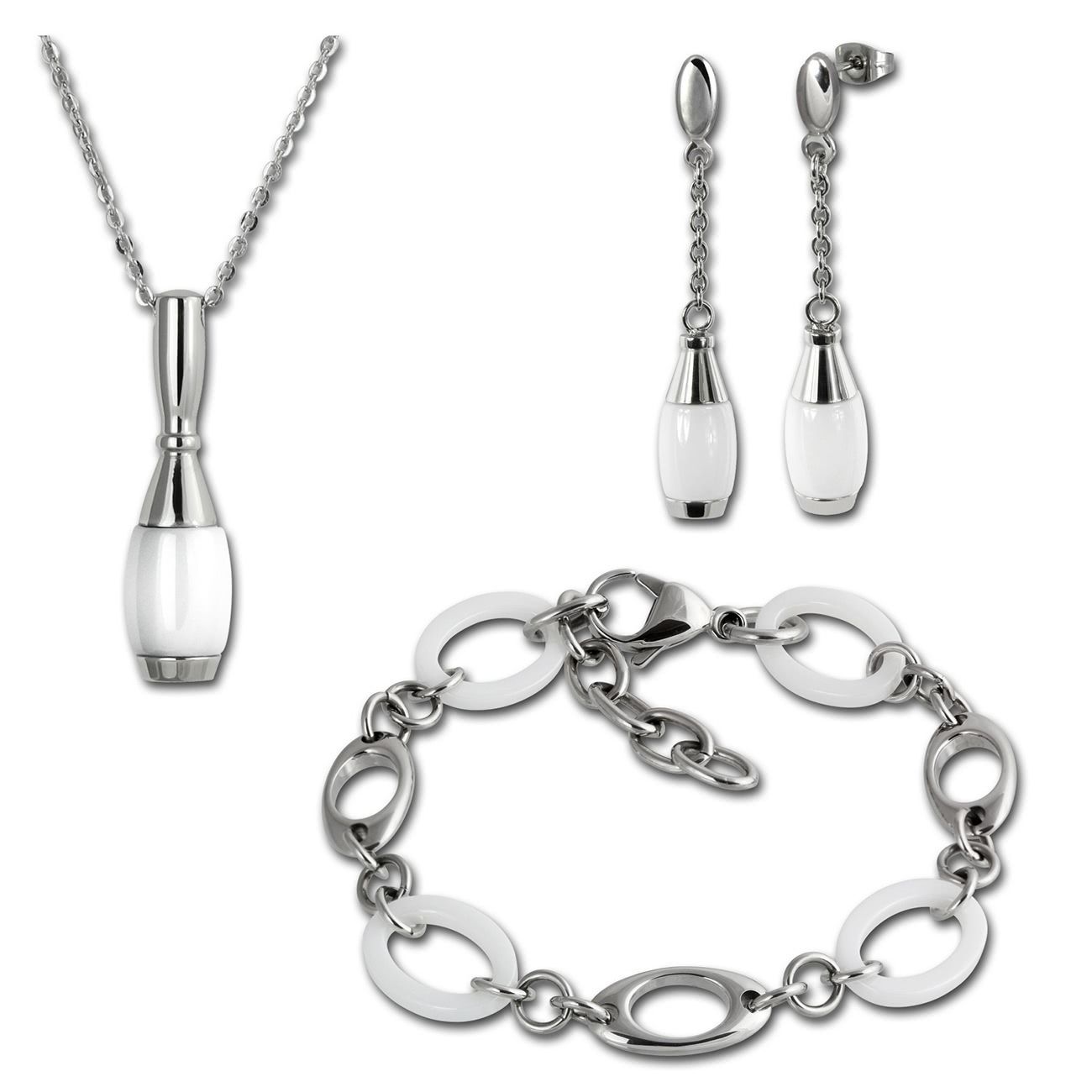 Stilvoll, edles Schmuck-Set aus Edelstahl und Keramik -Kegel-, weiß edelstahl - beinhaltet: Halskette, Armband und Ohrringe - aus dem Amello-Edelstahl-Sortiment.