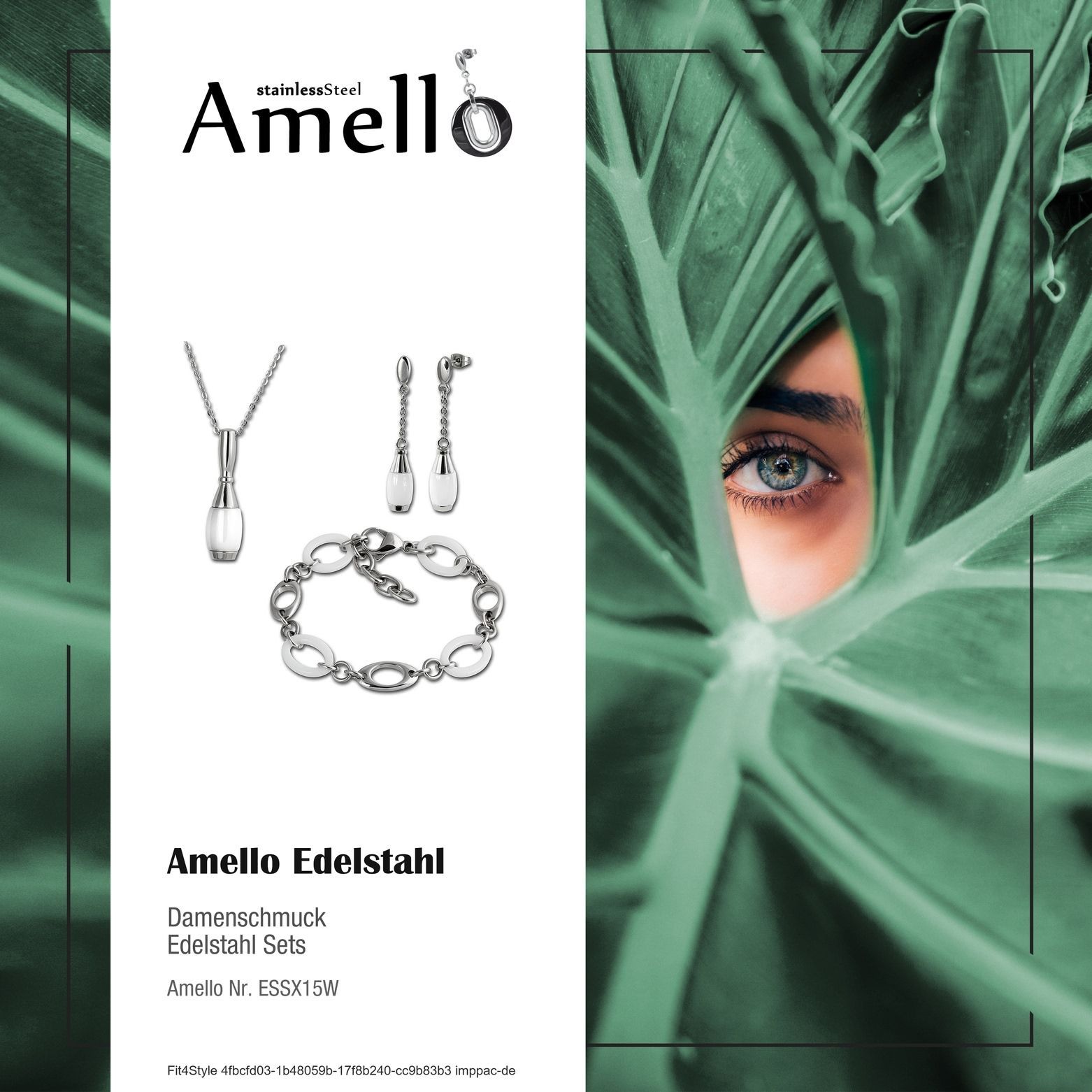 Amello Edelstahlschmuckset Kegel Keramik Kette, Armband, Ohrring ESSX15W