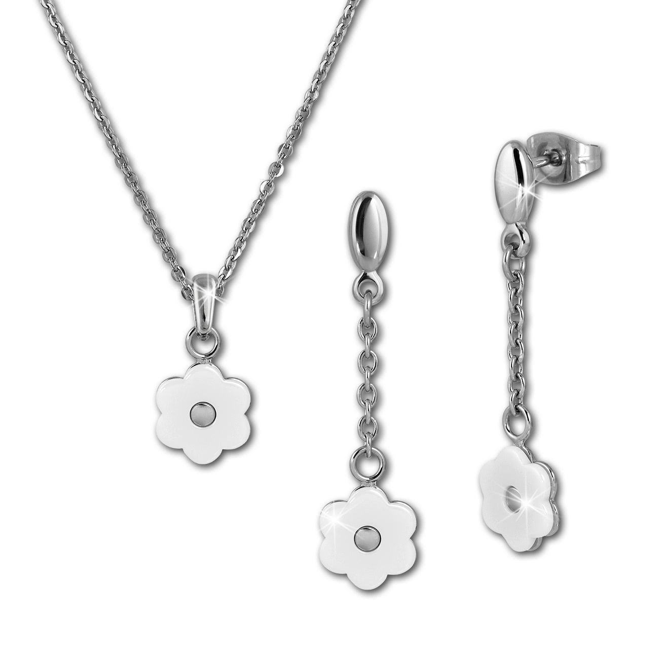 Amello Edelstahlschmuckset Keramik Blümchen weiß Kette, Ohrring ESSX41W
