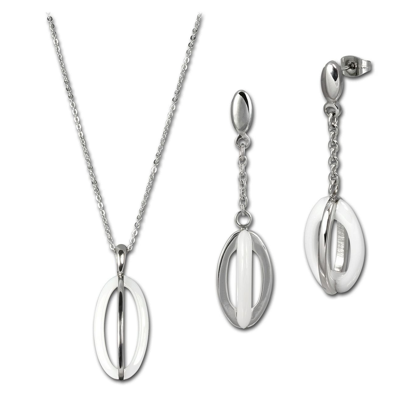 Amello Edelstahlschmuckset Keramik Ellipse Kette, Ohrring ESSX09W