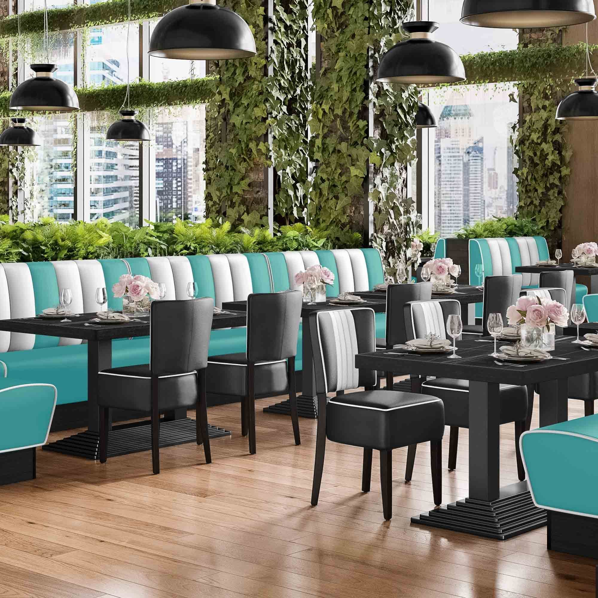 American 2 | Dinerbank | B: 120 x 103 cm | Gestreift | Türkis | Leder | American Di