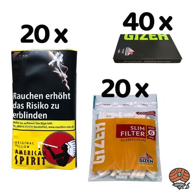 American Spirit Yellow/Gelb Drehtabak 20x 30g, Slim Filter, Fine Papers