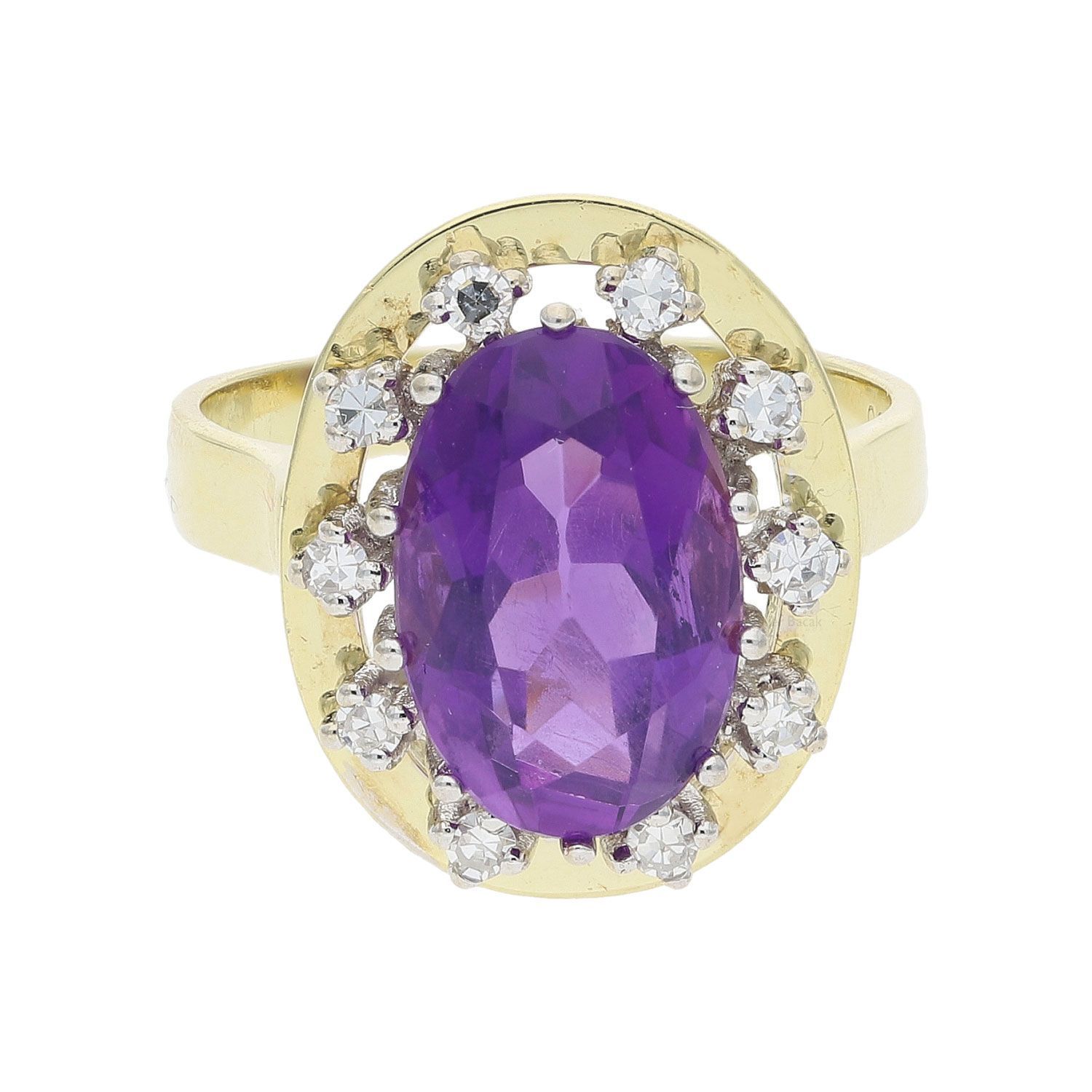 Amethystring Gold und Weißgold 585 Diamanten Second Hand 25322143 getragen