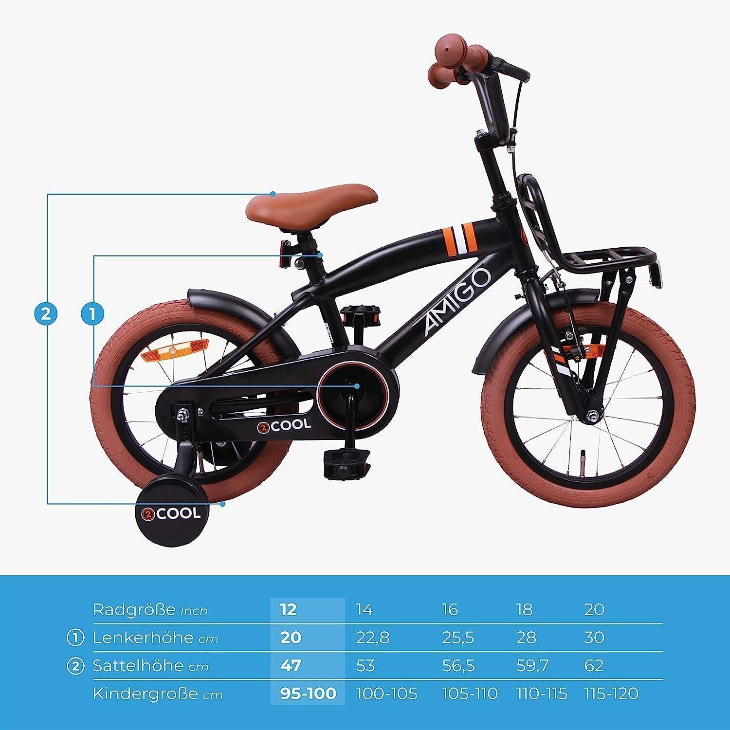 AMIGO Transport Fahrrad Kinder 2Cool 12 Zoll 20 cm Jungen Mattschwarz
