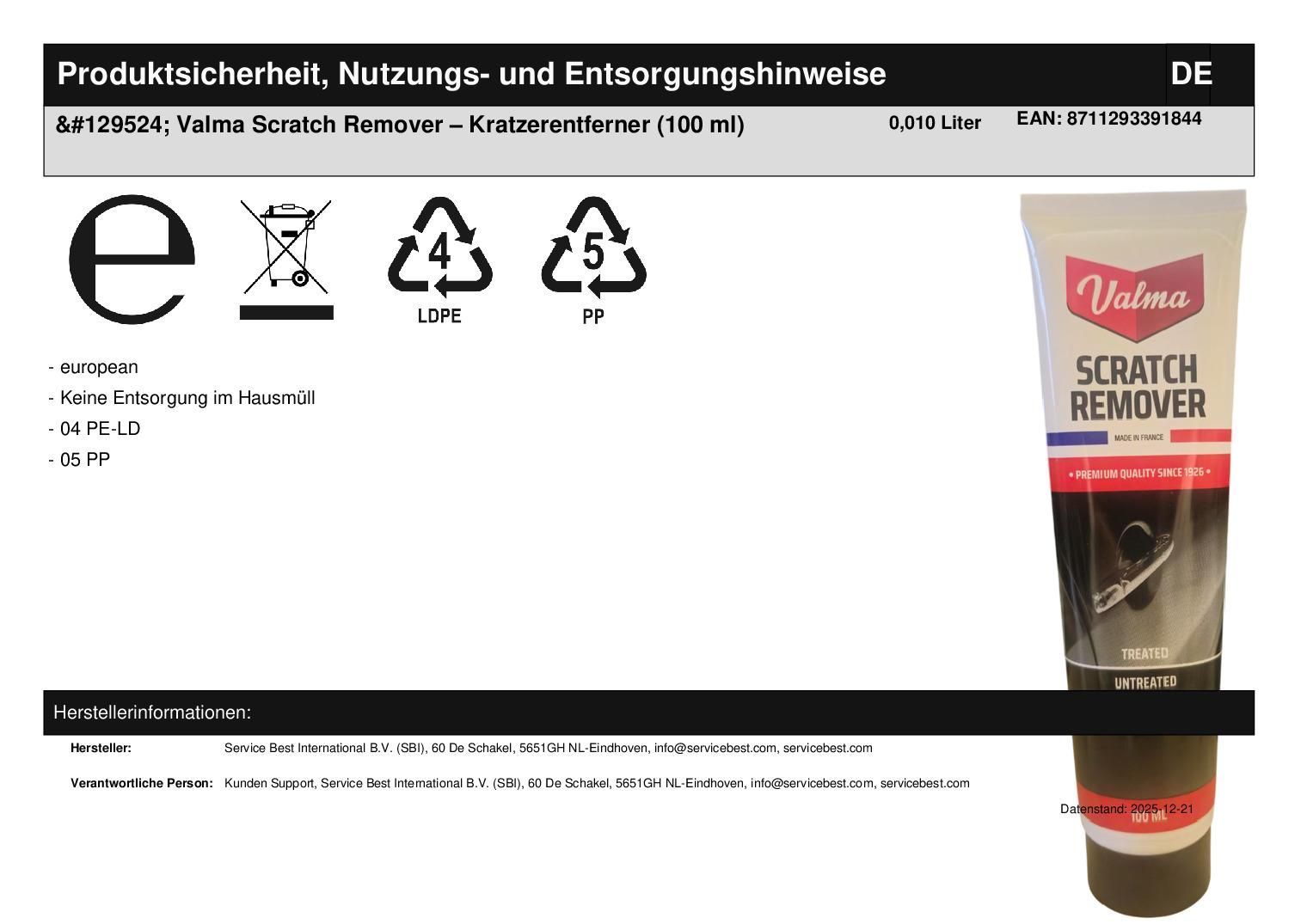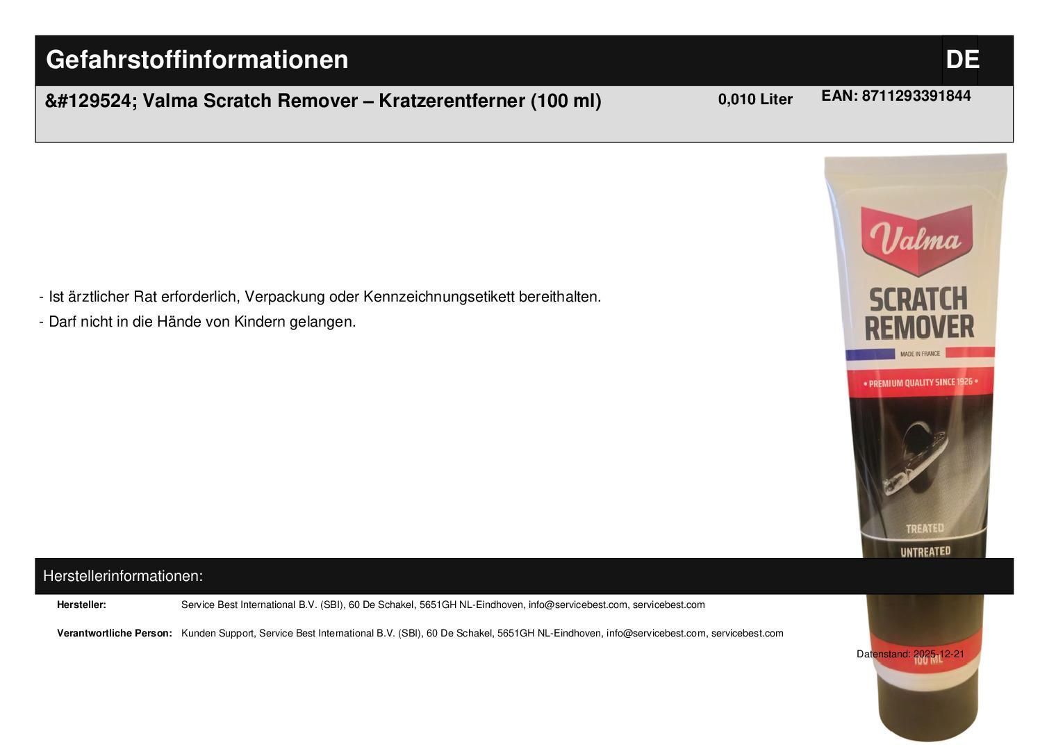 amp; 129524; Valma Scratch Remover ? Kratzerentferner (100 ml)