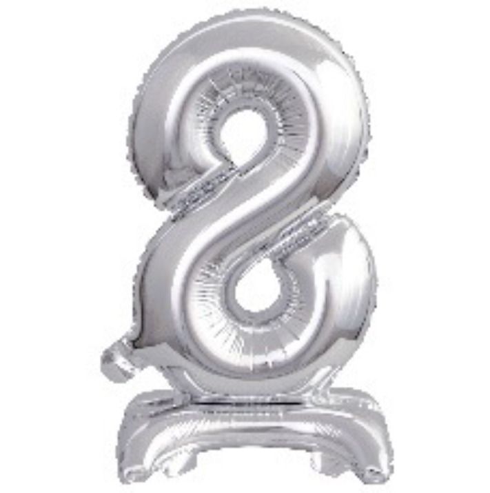 amscan amscan® 9911731 Folienballon Mini Zahl 8 - 15 x 38 cm, mit Standfuß, silber