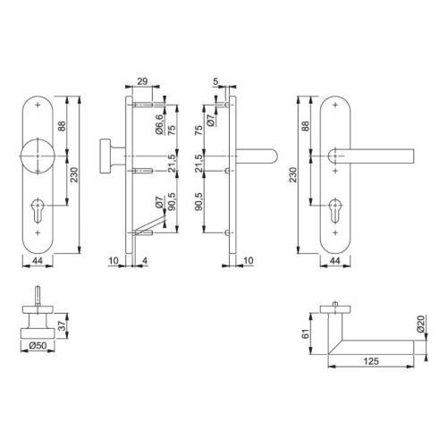 HOPPE Amsterdam Hoppe Edelstahl matt Feuerschutzgarnitur Langschild Wechselgarnitur PZ