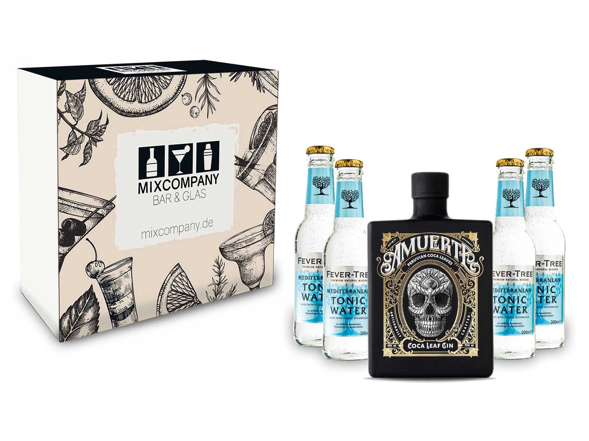 Amuerte Geschenkset - Gin Tonic Black Coca Leaf Koks Gin 0,7l (43% Vol) + 4x F