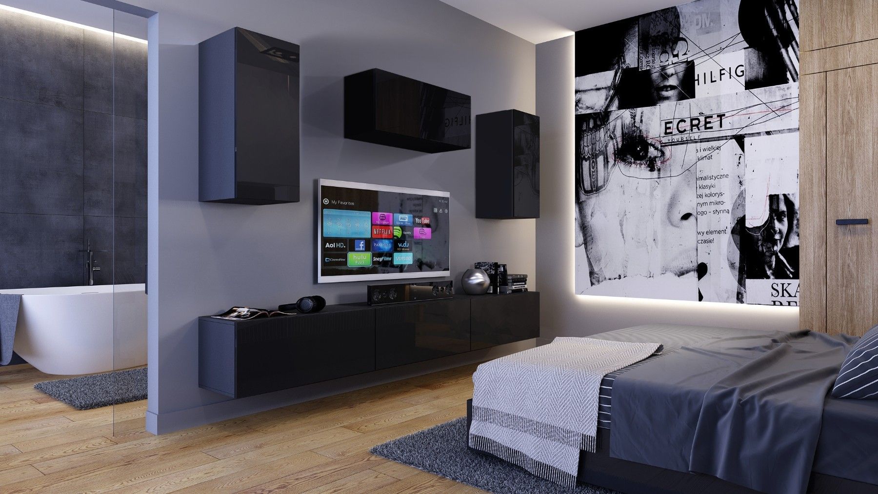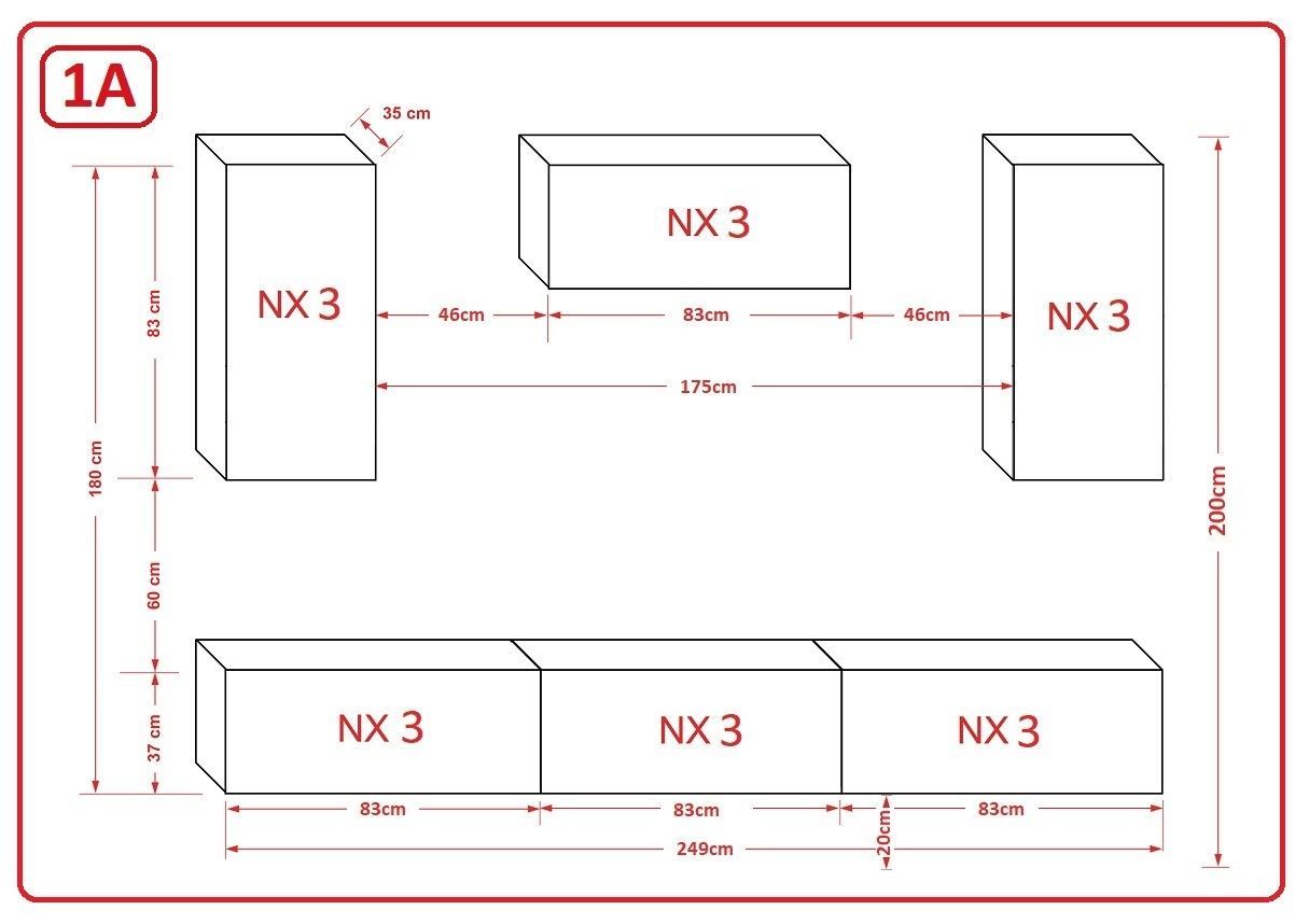 AN25 1A 249 cm Möbel Wohnzimmer Wohnwand Mediawand Schrankwand Regal Farbauswahl