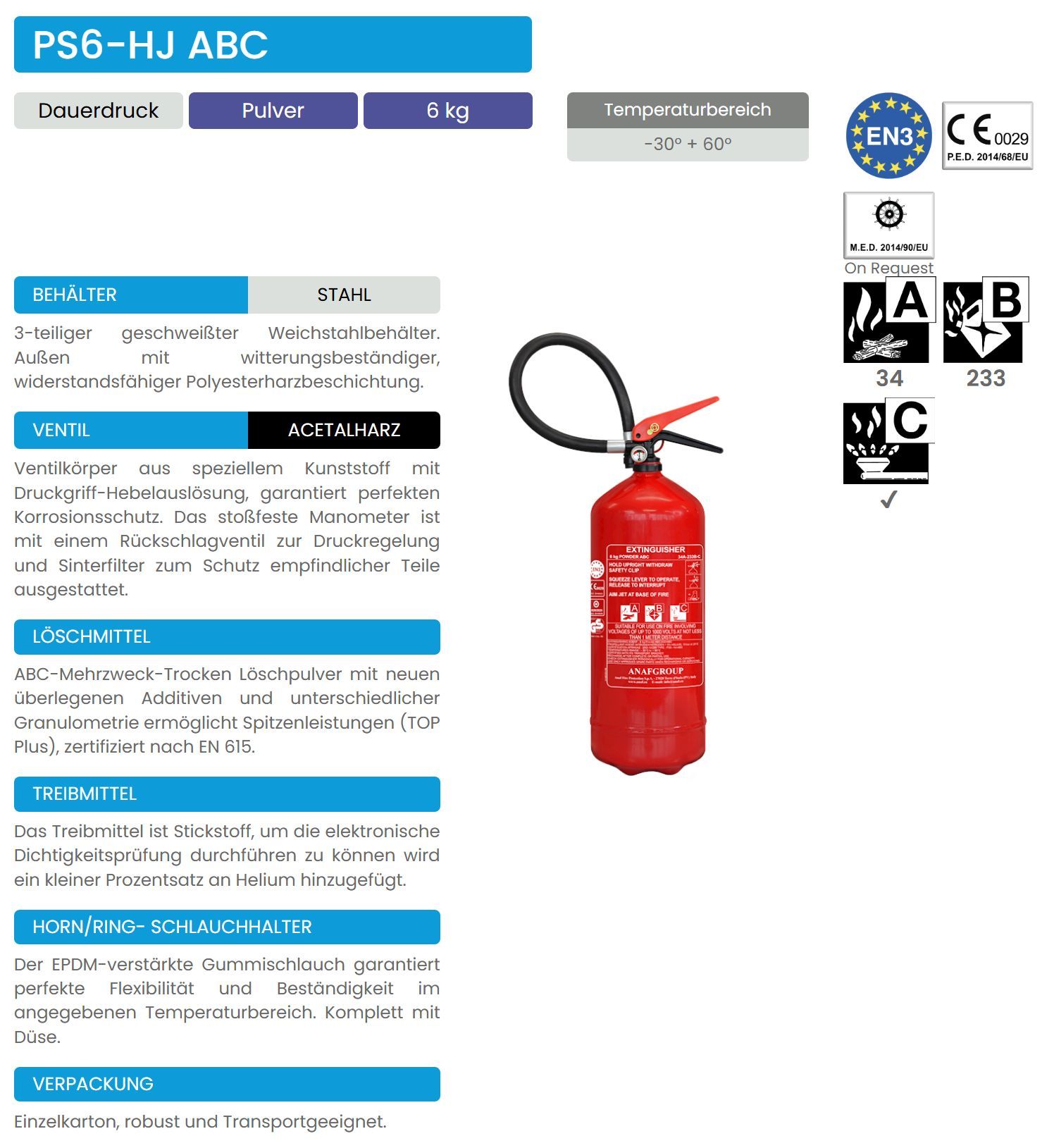 ANAF ANAF Feuerlöscher 6 kg ABC Pulver, Typ PS6-HJ ABC