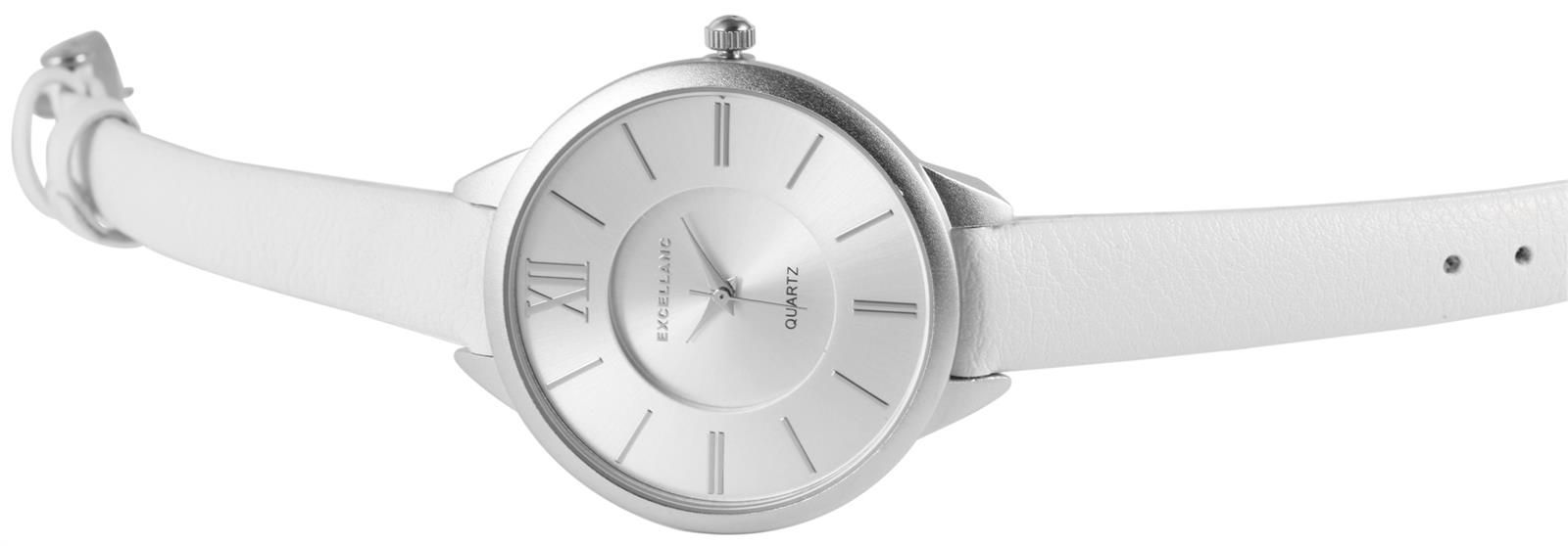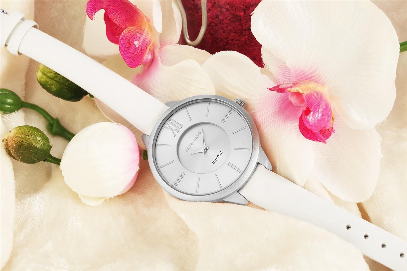 Analog Damenuhr Armbanduhr Kunstlederband schmal weiß ohne Ziffern Quartzwerk