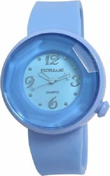 Analog Damenuhr Armbanduhr Silikonband blau Quartzwerk großes Gehäuse 45 mm blau