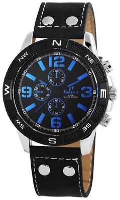 • Herrenuhr Armbanduhr Kunstleder Chronolook schwarz blaue Ziffern Analog TimeTech
