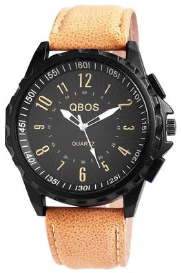 • Herrenuhr Kunstleder Armanduhr braun schwarzes Gehäuse Analog Quartz QBOS