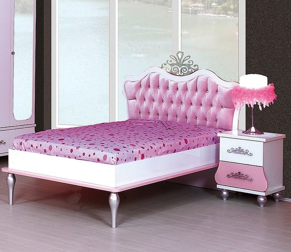 bymm Anastasia Jugendbett rosa mit Rollrost, gepolstertes Kopfteil, 120x200cm