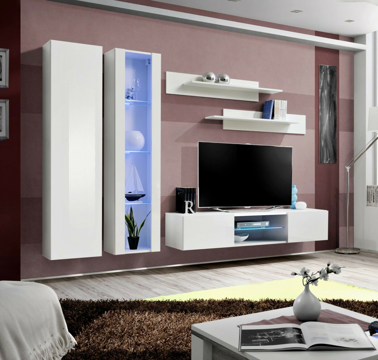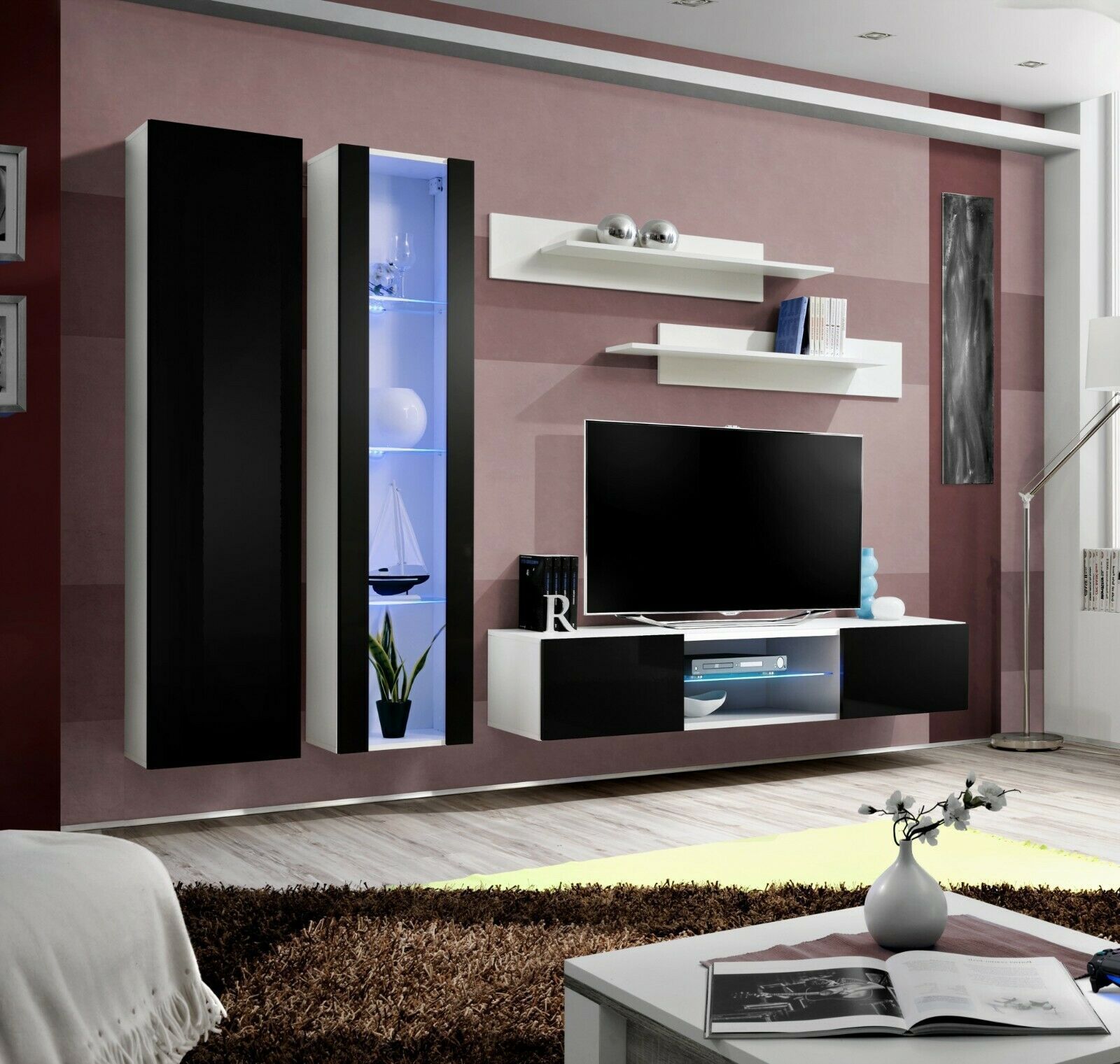Anbauwand Wohnwand Schrankwand FLY O4 mit Hochglanz und Led Beleuchtung