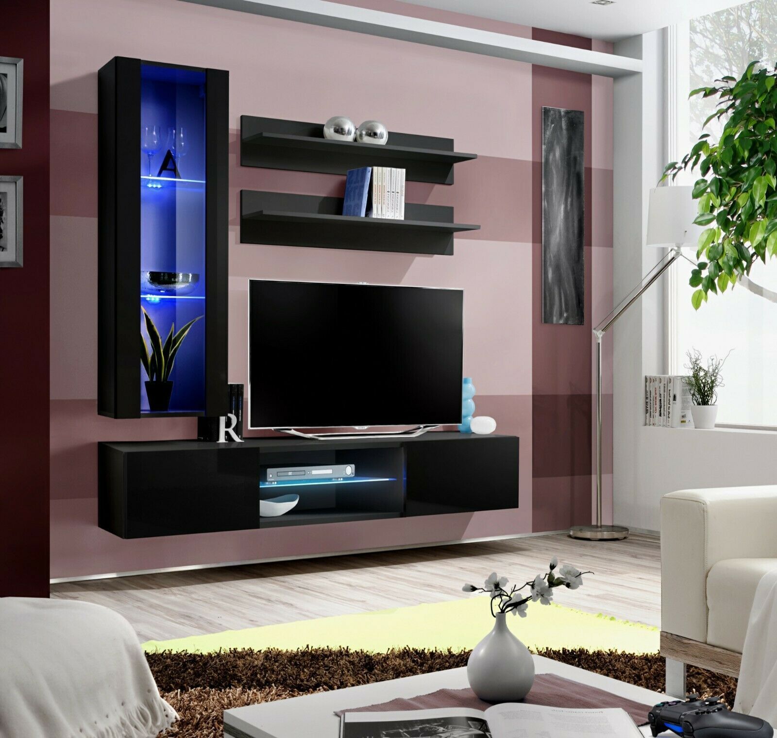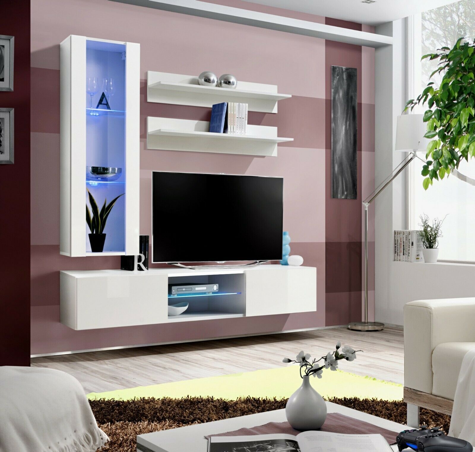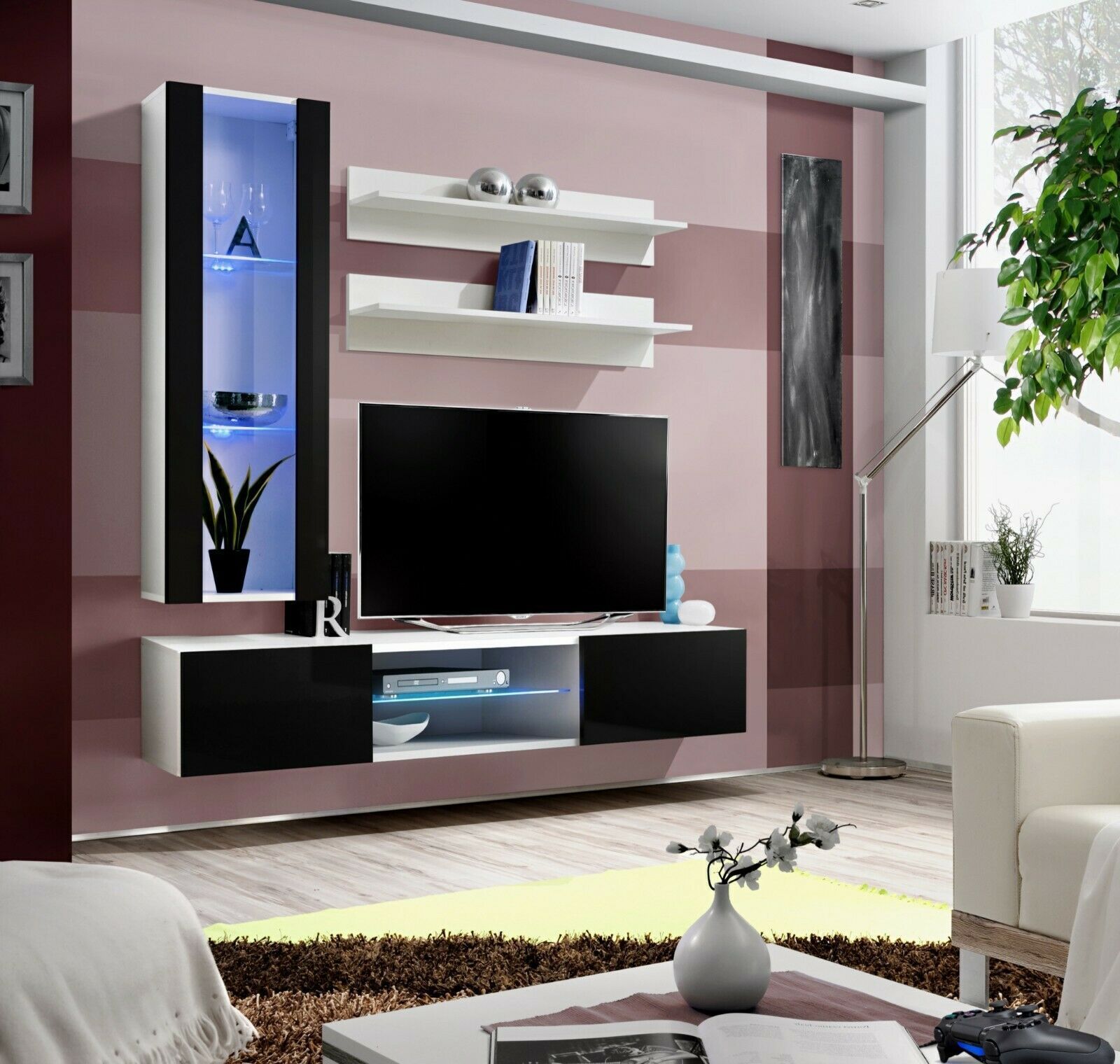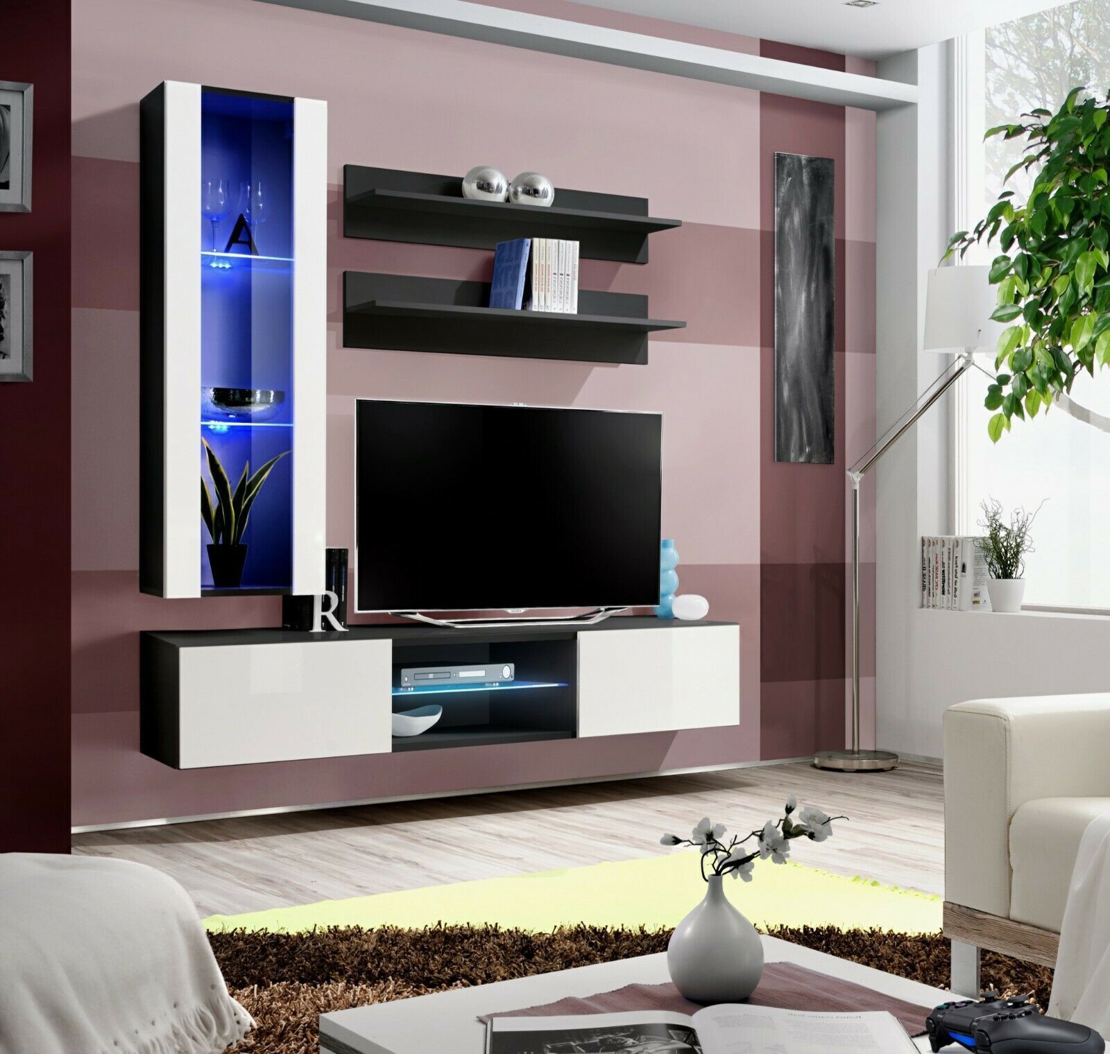 Anbauwand Wohnwand Schrankwand FLY S2 mit Hochglanz und Led Beleuchtung
