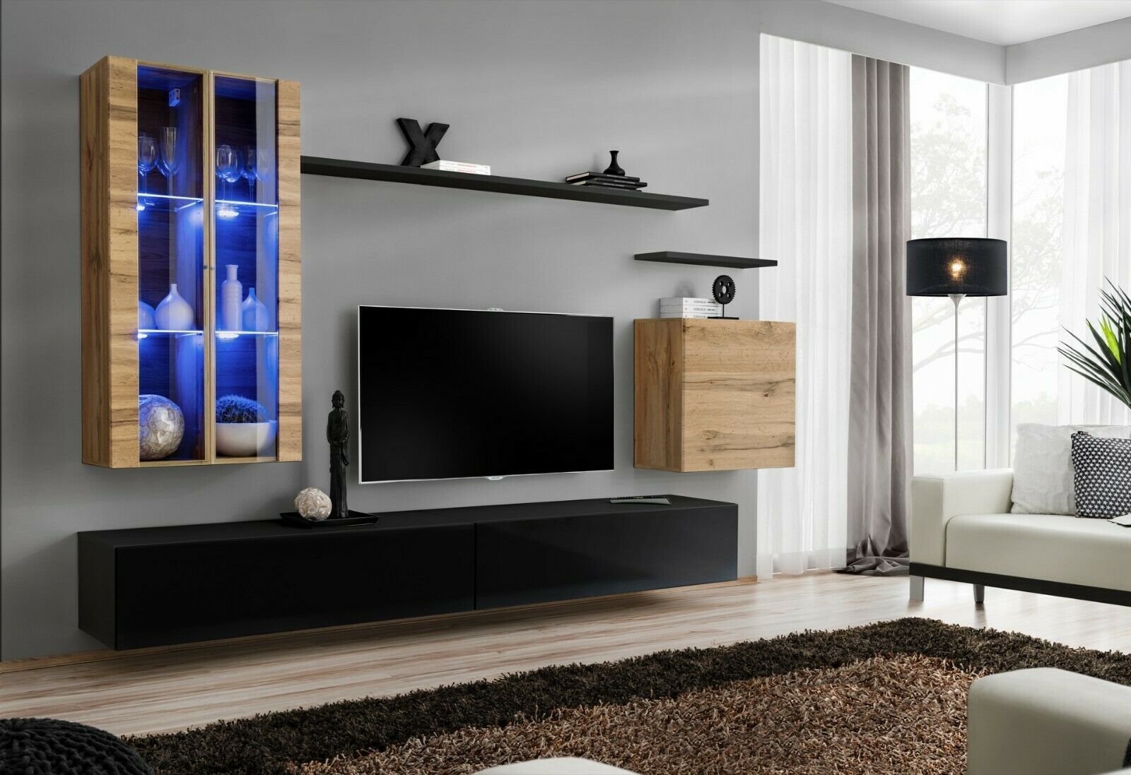 Anbauwand Wohnwand Schrankwand SWITCH XII Wotan Hochglanz PVC Push - Click Led