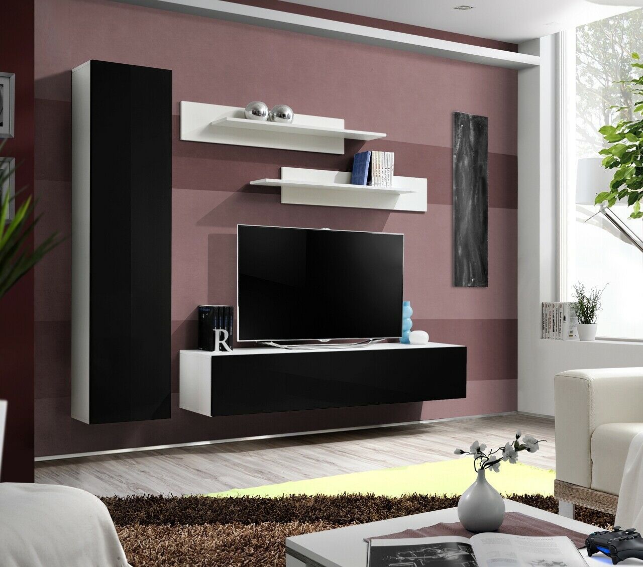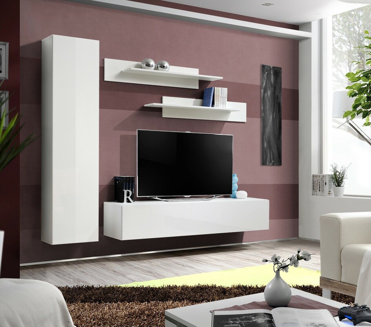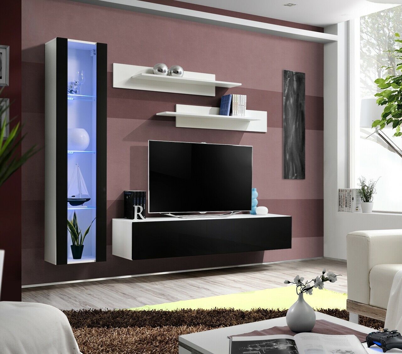 Anbauwand Wohnwand Wohnzimmer Schrankwand FLY G mit Hochglanz Led Beleuchtung