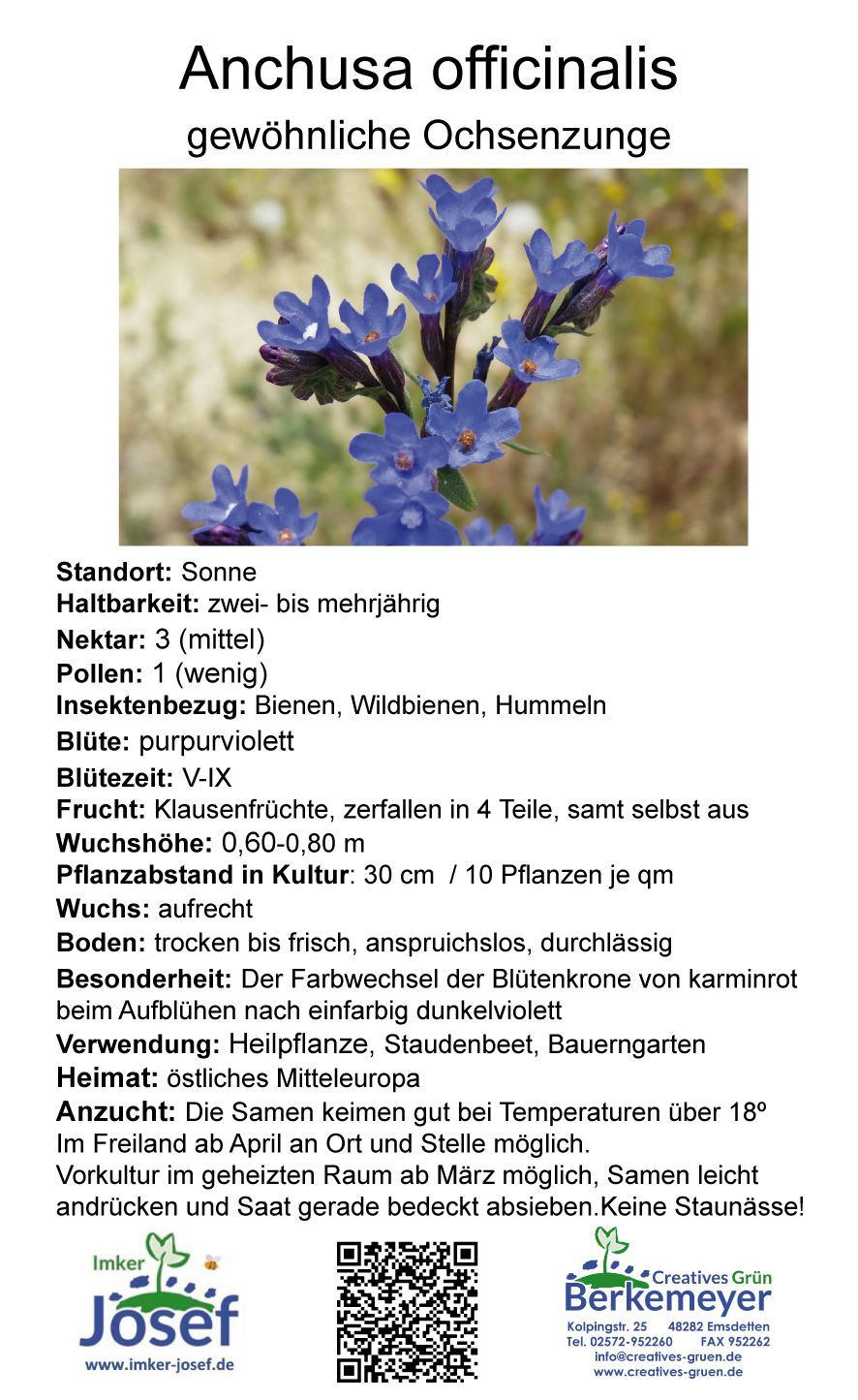 Anchusa officinalis - Ochsenzunge, 1 Stck., im Topf, heimische Wildpflanze (UG02)