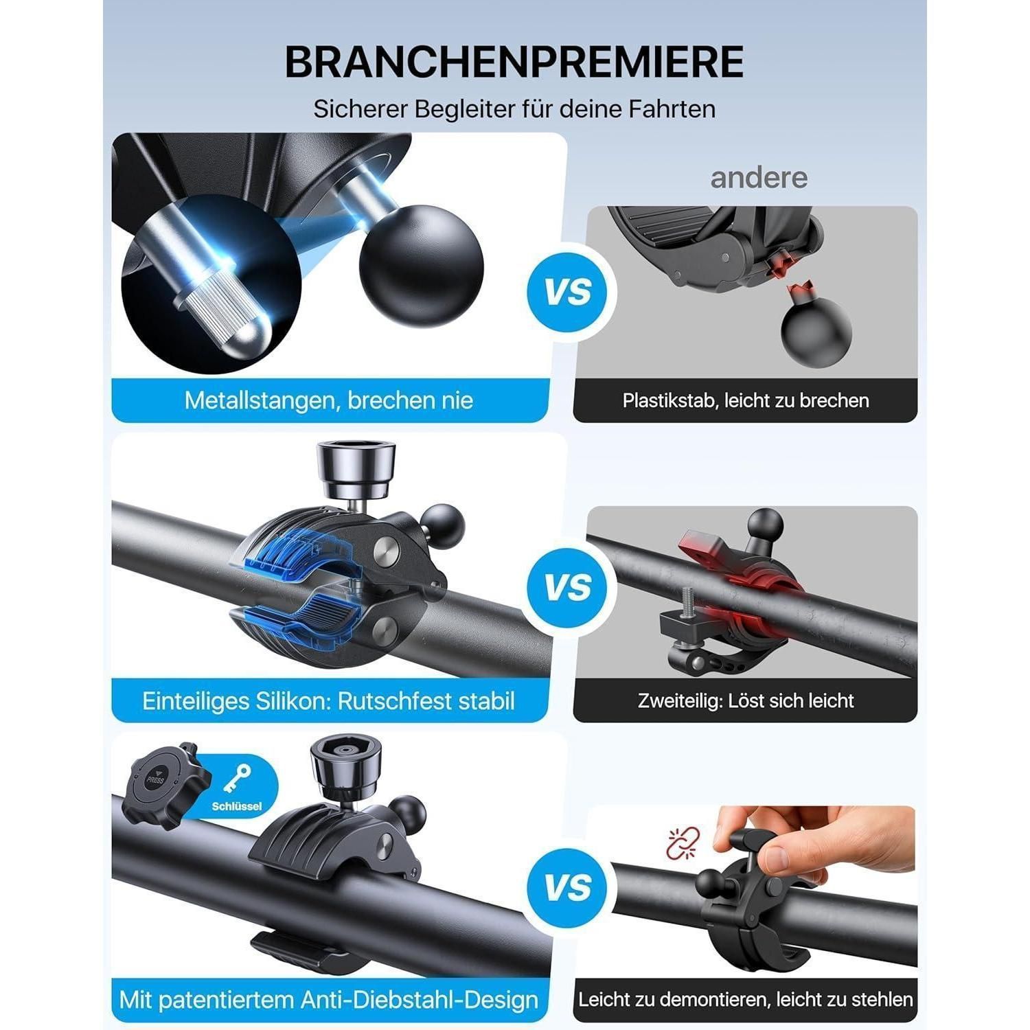 Andobil Motorrad Handyhalterung Diebstahlschutz Vibration Schwarz