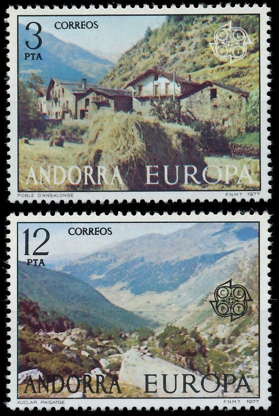 ANDORRA SPANISCHE POST 1970-1979 Nr 107-108 postfrisch Europa Gemeinschaftsausgaben CEPT 1977 0.71€ incl. MwSt: Differenzbesteuert zzgl. Versandkosten Bestell-Nr.: S1771F2 Katalog-Nr: MICHEL (107 - 108) Katalogpreis: 2 EUR Qualität: Normal Erhaltung: Postfrisch ** Einheit: Satz Bogenlage: Gummi