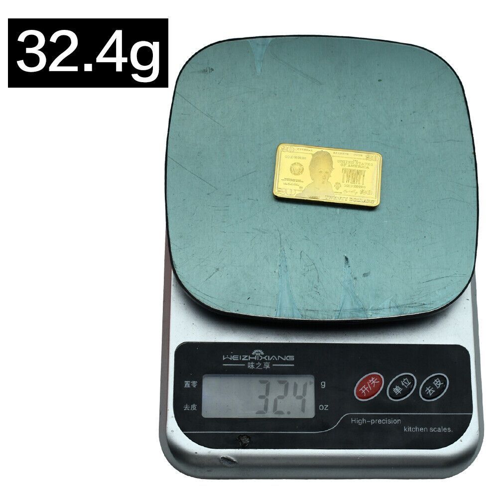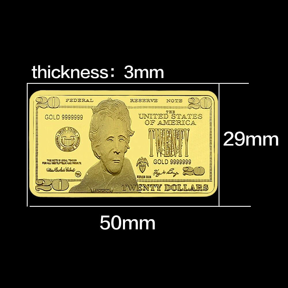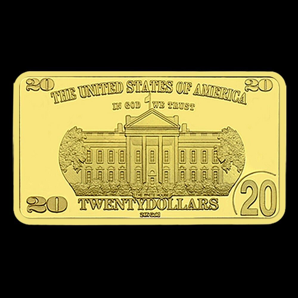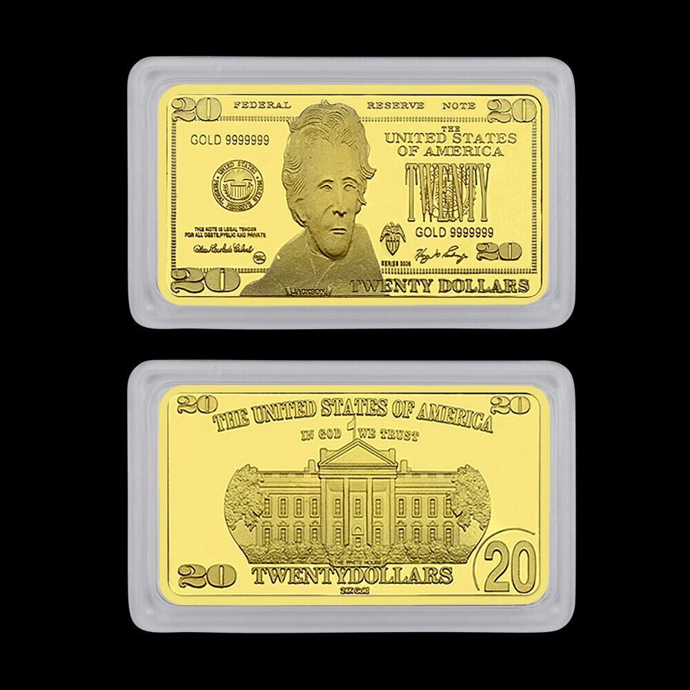 Schöne seltene USA Medaillen Barren Andrew Jackson - US Präsident - 20 Dollar wie abgebildet Technische Information zum Artikel Material: vergoldet Gewicht ca.: 31,8 Gramm Größe ca.: 50 x 29 mm x 30 mm Erhaltung: Polierte Platte Verpackung: Kapsel Erhaltung: Polierte Platte (Optische Mängel möglich)