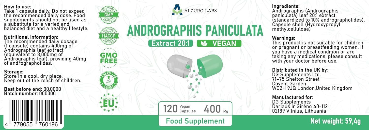 Andrographis Paniculata 8000mg Äquivalent 400mg 20:1 Kalmegh Extrakt 10% Andrographis